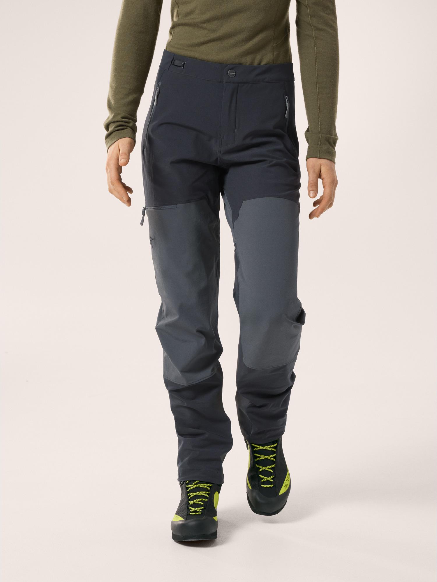 Breathable, softshell wind pants with a fitted design for alpine climbing.