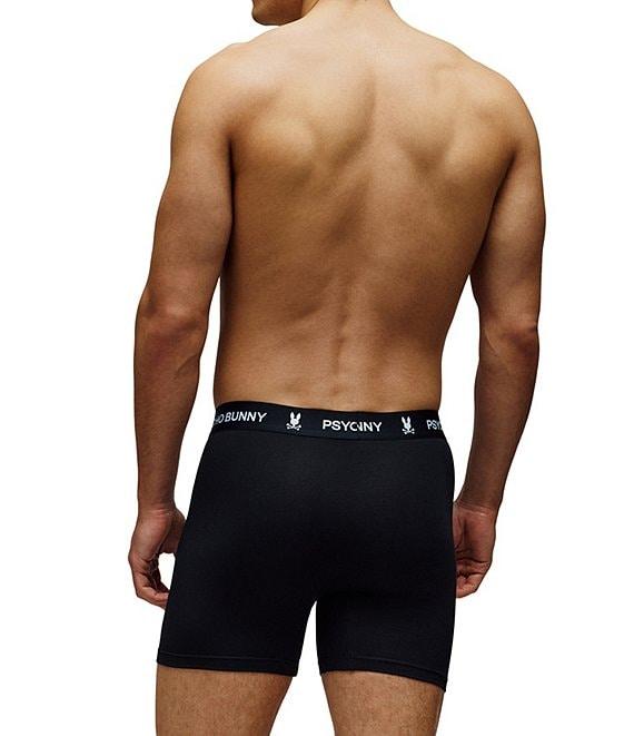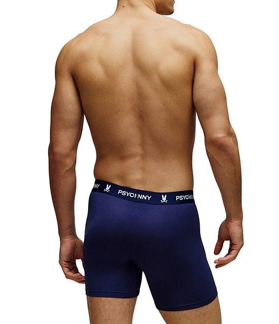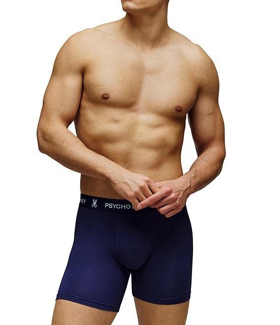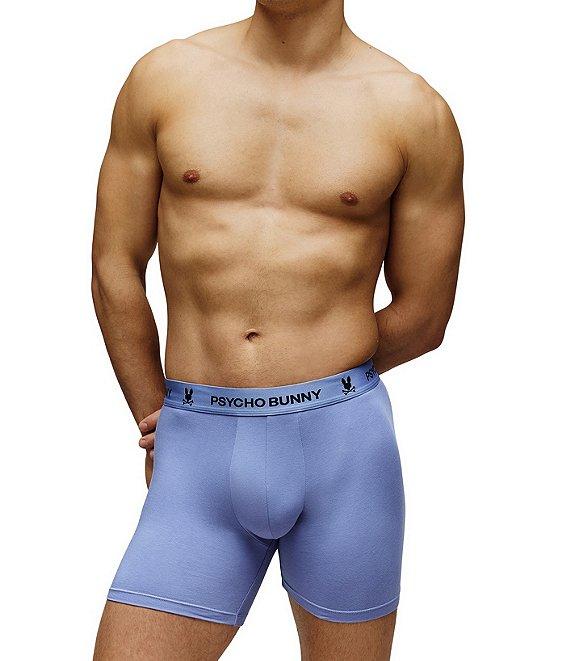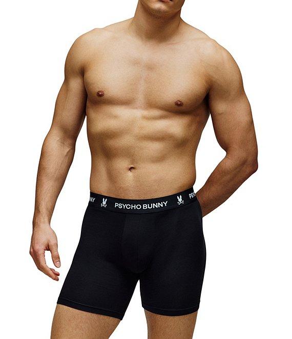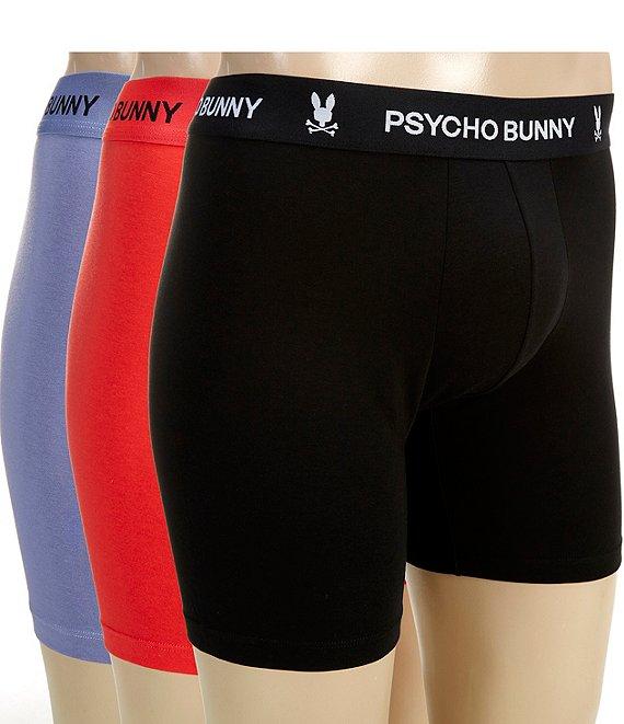 From Psycho Bunny, these boxer briefs feature: Approx. 5.5" inseam Solid tone Jacquard-woven logo at waistband 3-pack Stretch cotton-modal blend jersey Cotton/modal/elastane Machine wash/tumble dry Imported.