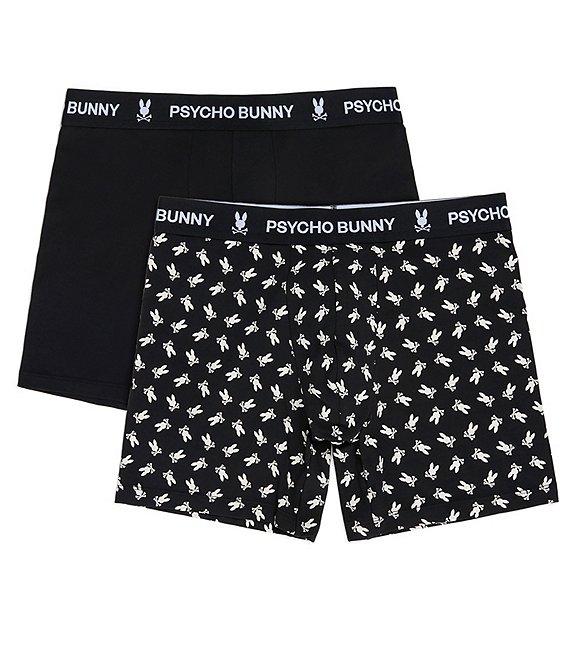 From Psycho Bunny, these boxer briefs feature: One pair of bunny logo-patterned boxer briefs One pair of tonal-colorway boxer briefs Snug fit Mid rise Jacquard-woven bunny logo at the elasticized waistband No-fly paneled front Ultra-soft jersey cotton/modal Machine wash/tumble dry Imported.