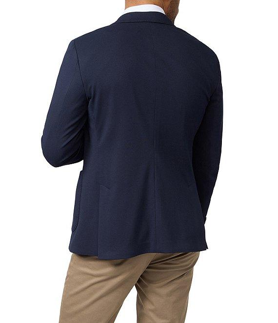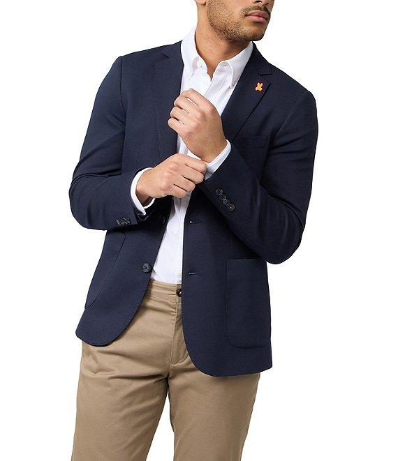 From Psycho Bunny, this sport coat features: Solid print Contemporary fit Single breasted Two-button jacket Long sleeve-4 button Notch lapel Lower patch pockets Upper welt breast pocket 1/2 lined Side vents Nylon/viscose/spandex Dry clean Imported.