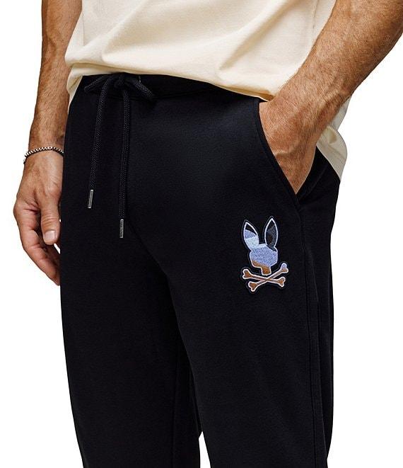 From Psycho Bunny, these pants feature: Solid tone Jogger silhouette Mid rise Drawstring elastic waist Flat front 2 Welt pockets Embroidered signature "Bunny" on the side Zip pocket on the back Elasticized cuffs Cotton/polyester/viscose Machine wash/tumble dry Imported.