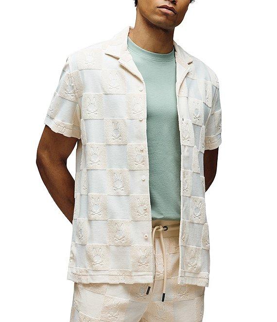 From Psycho Bunny, this shirt features:Checkered logo patternCamp collarShort sleevesButton-front closureStraight hemTerry clothCotton/polyesterMachine wash/tumble dryImported.