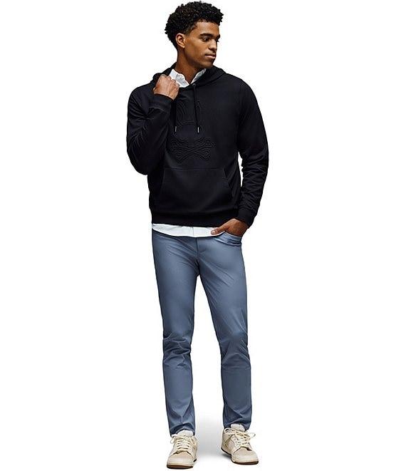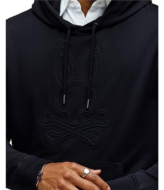 From Psycho Bunny, this hoodie features: Attached hood with drawstrings Long sleeves Outline stitch logo Kangaroo pocket Straight hem Ribbed cuffs and hem Pullover construction Stretch fabric Cotton/viscose/elastane Machine wash/tumble dry Imported.