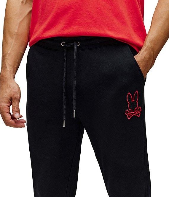 From Psycho Bunny, these sweatpants feature: Regular fit Mid rise Elastic drawstring waistband Flat-front Dual side pockets, 1 back pocket Solid tone with embroidered "Bunny" on the left leg Full length Cotton Machine wash cold/tumble dry Imported.