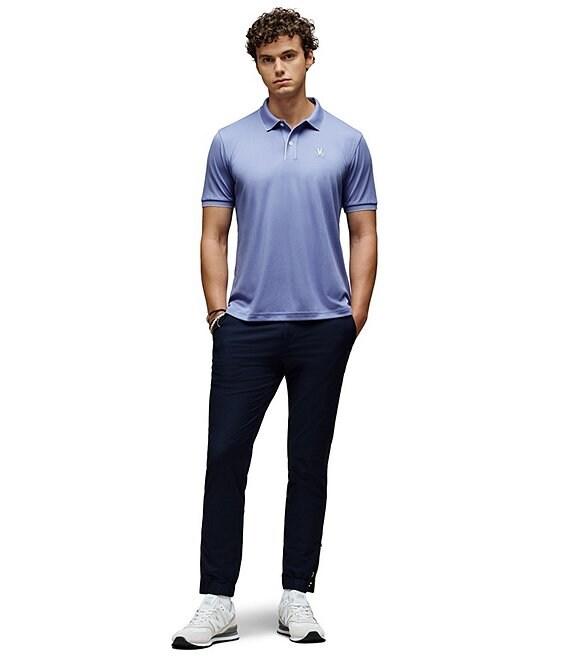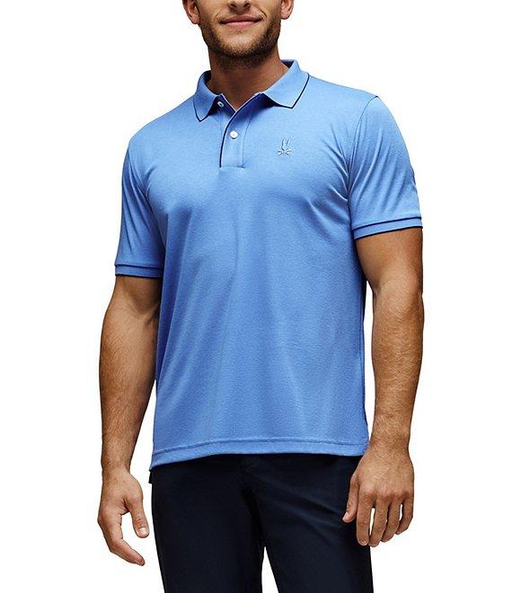 From Psycho Bunny, this polo shirt features: Ribbed polo collar Short sleeves 2-button placket Embroidered "Bunny" logo at the left side of chest Slim fit Pullover construction Breathable Quick dry Moisture wicking Stretch pique fabric Polyester/pima cotton/modal Machine wash/tumble dry Imported.
