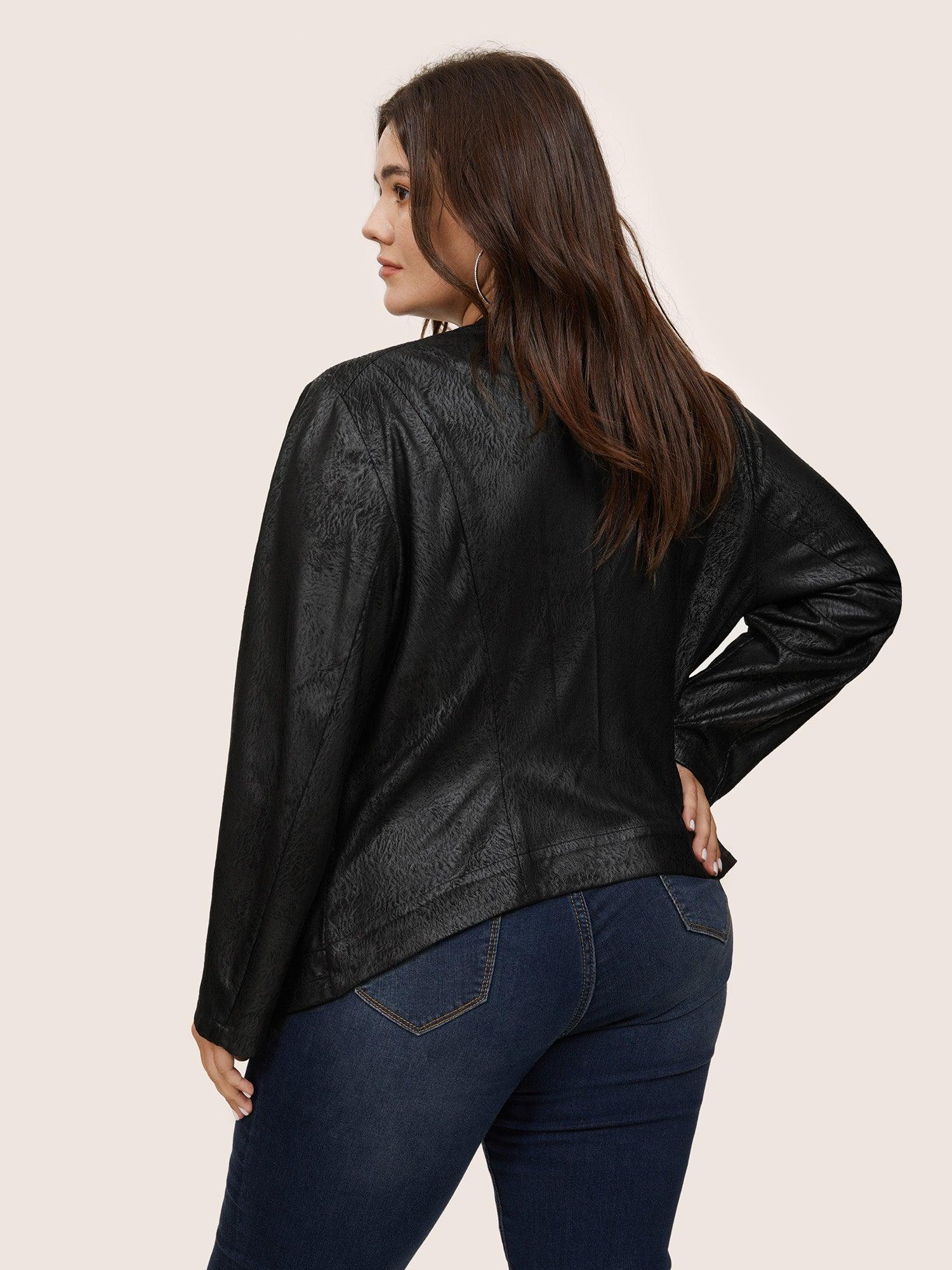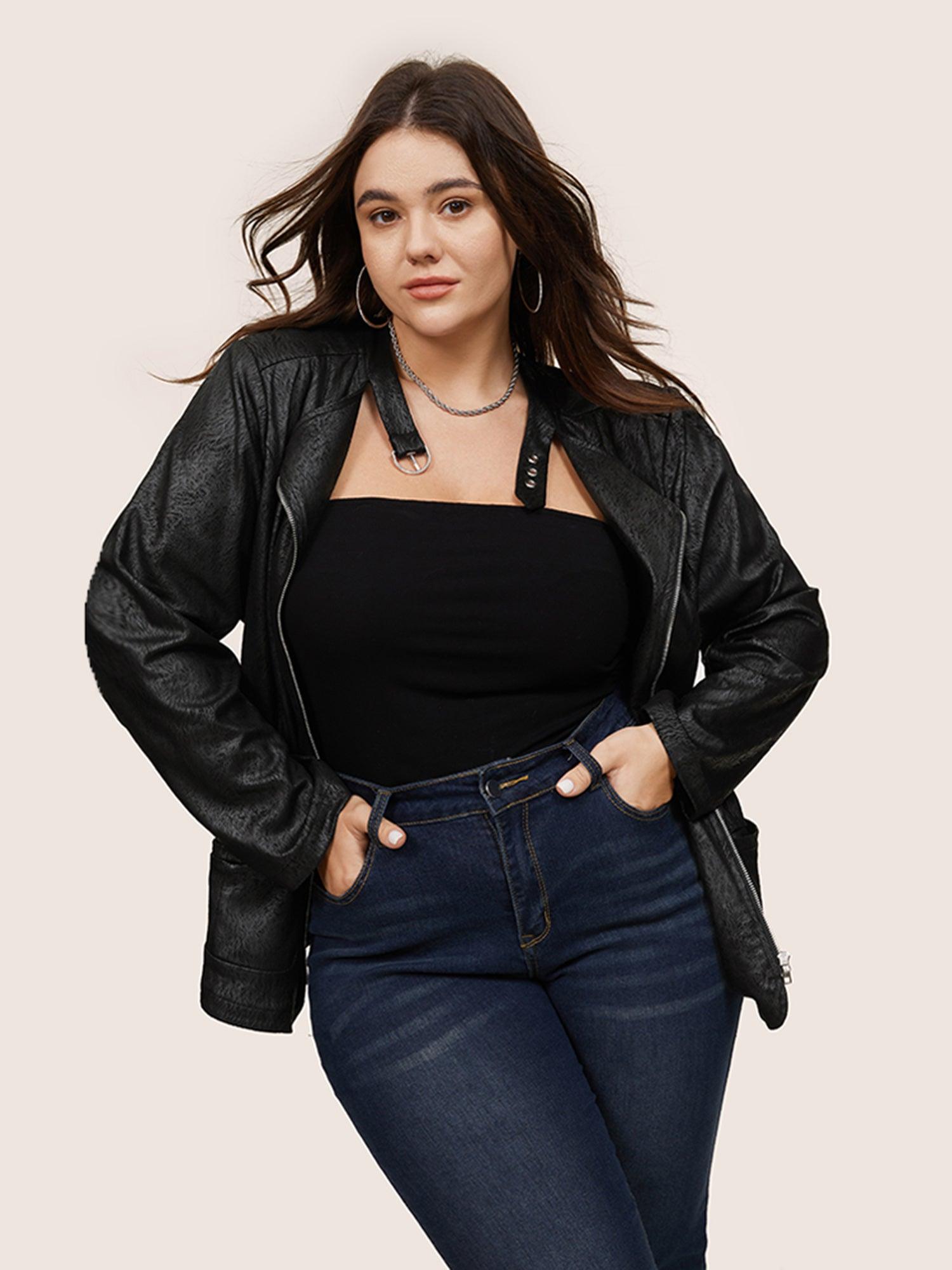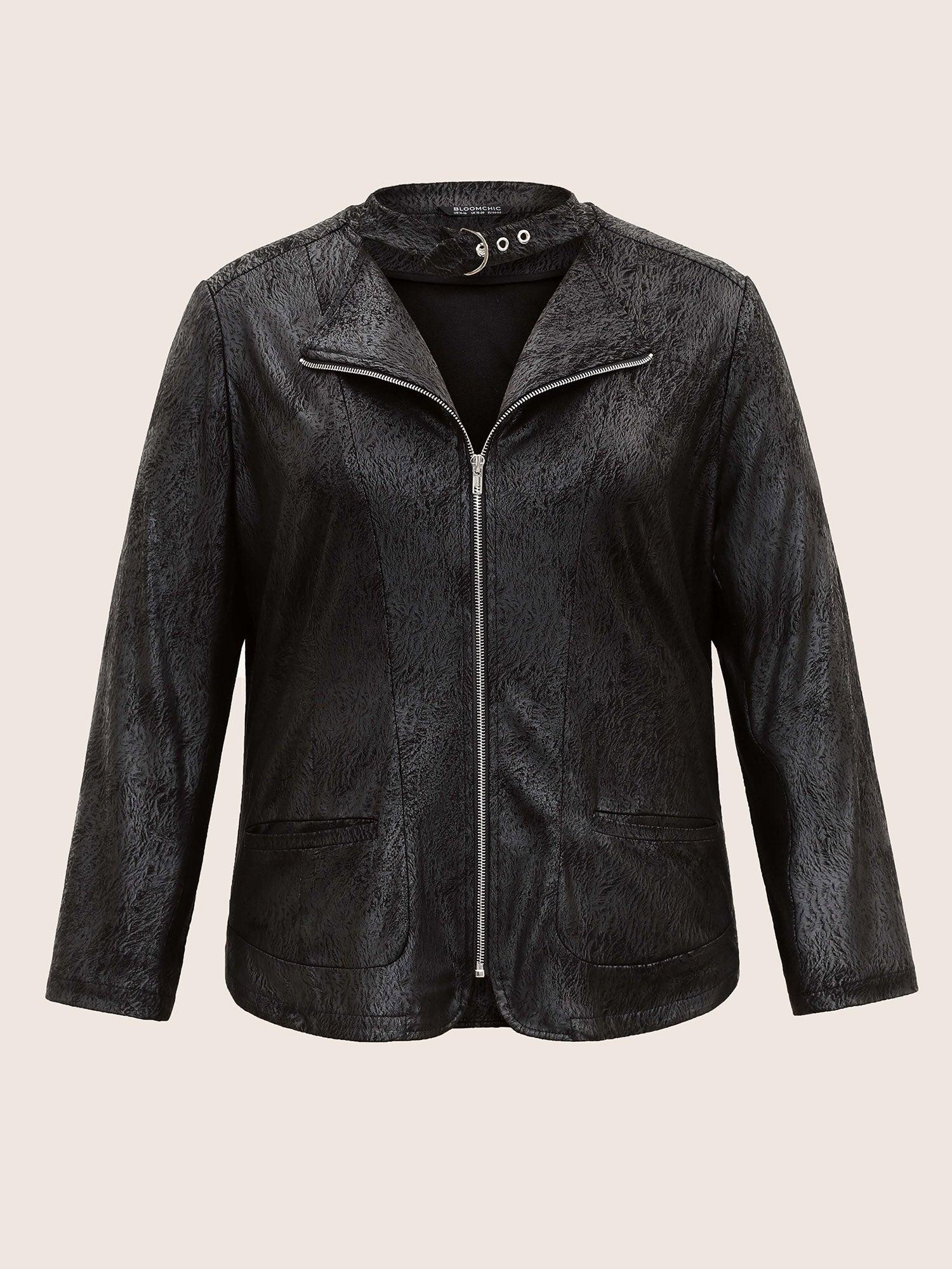 Shop PU Leather Print Faux Suede Buckle Detail Jacket now and redefine your style with confidence at BloomChic. Tailored for mid and plus-size women. This trendy Outerwear Women, sizes 10-30. Season:Winter;Color:Black;Pattern Type:Plain;Details:Pocket, Zipper, Texture;Pocket:It is perfectly sized to carry a phone.;Belt:No-belt;Closure Type:Zipper;Lining:No-lining