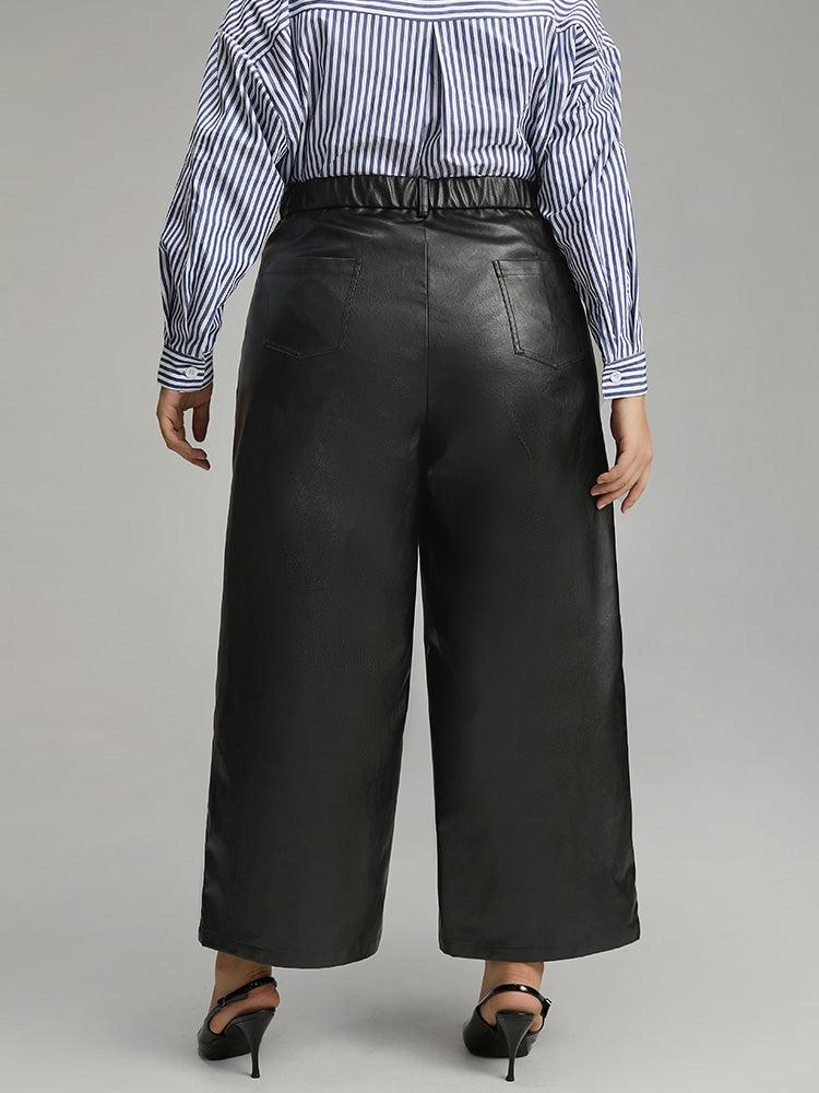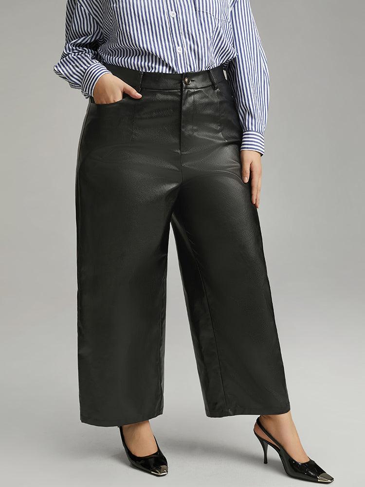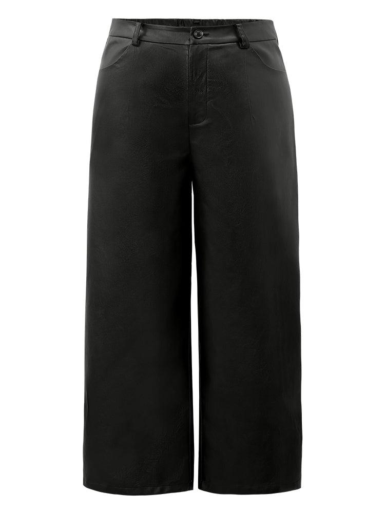 Shop PU Wide Leg Pocket Pants now and redefine your style with confidence at BloomChic. Tailored for mid and plus-size women. This trendy Bottoms Women, sizes 10-30. Season:Winter;Color:Black;Style:Elegant;Waist Design:High Rise;Pattern Type:Plain;Details:Pocket, Elastic Waist;Pocket:It is perfectly sized to carry a phone.;Belt:No-belt;Closure Type:Button