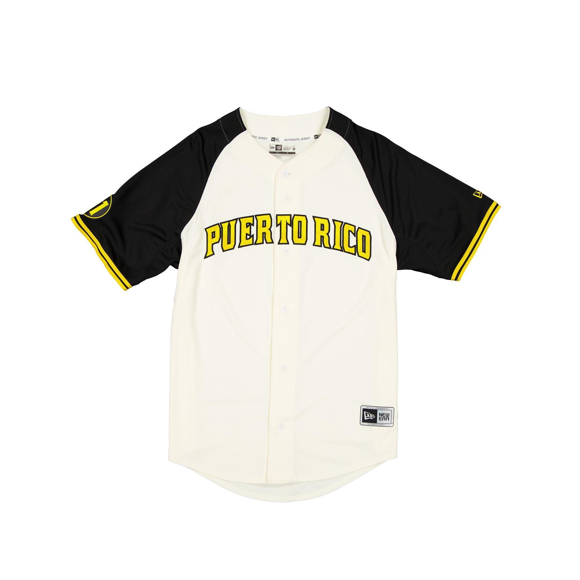 The Puerto Rico Alt 1 Jersey Puerto Rico wordmark applique at the chest with a New Era Official Merchandise patch at the front, a matching team logo at the right-wear sleeve, and a FBPR logo at the rear.Fabric: 100% Polyester