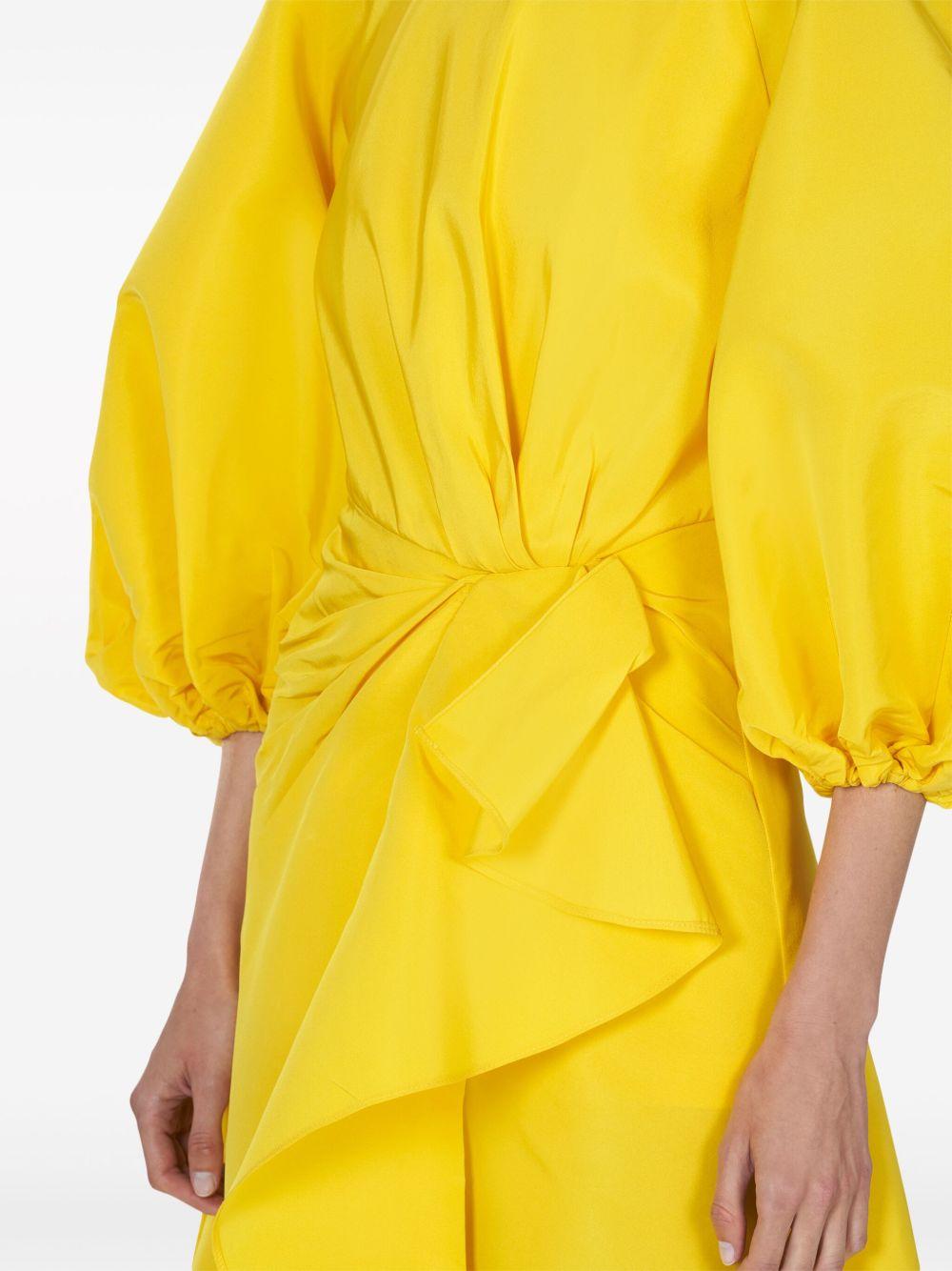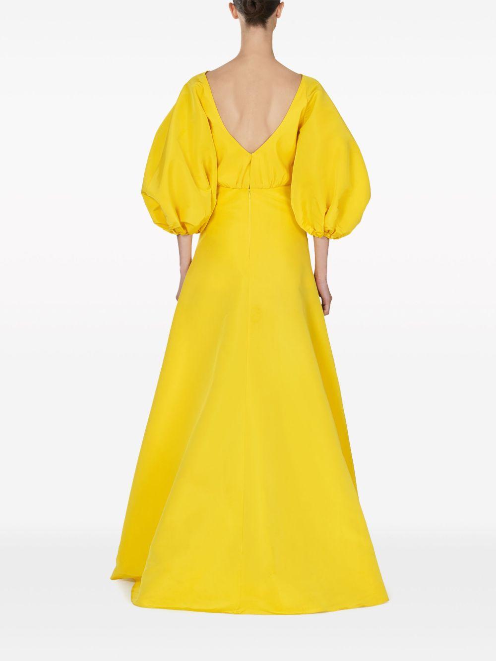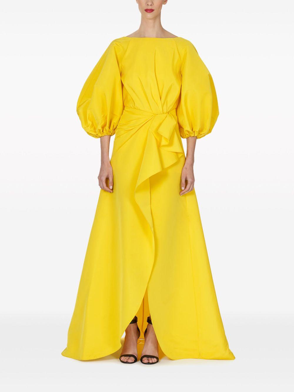 puff-sleeve sarong silk gown