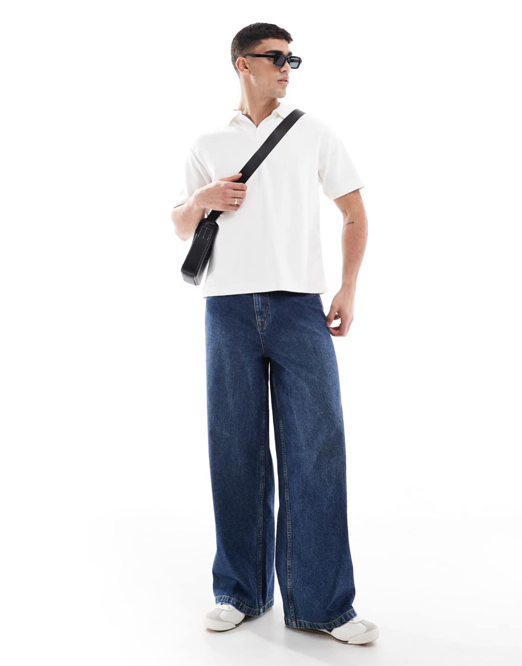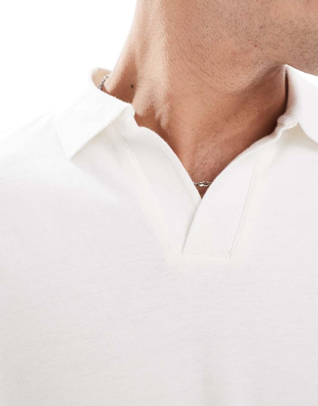 Pull&Bear camp collar polo shirt in white