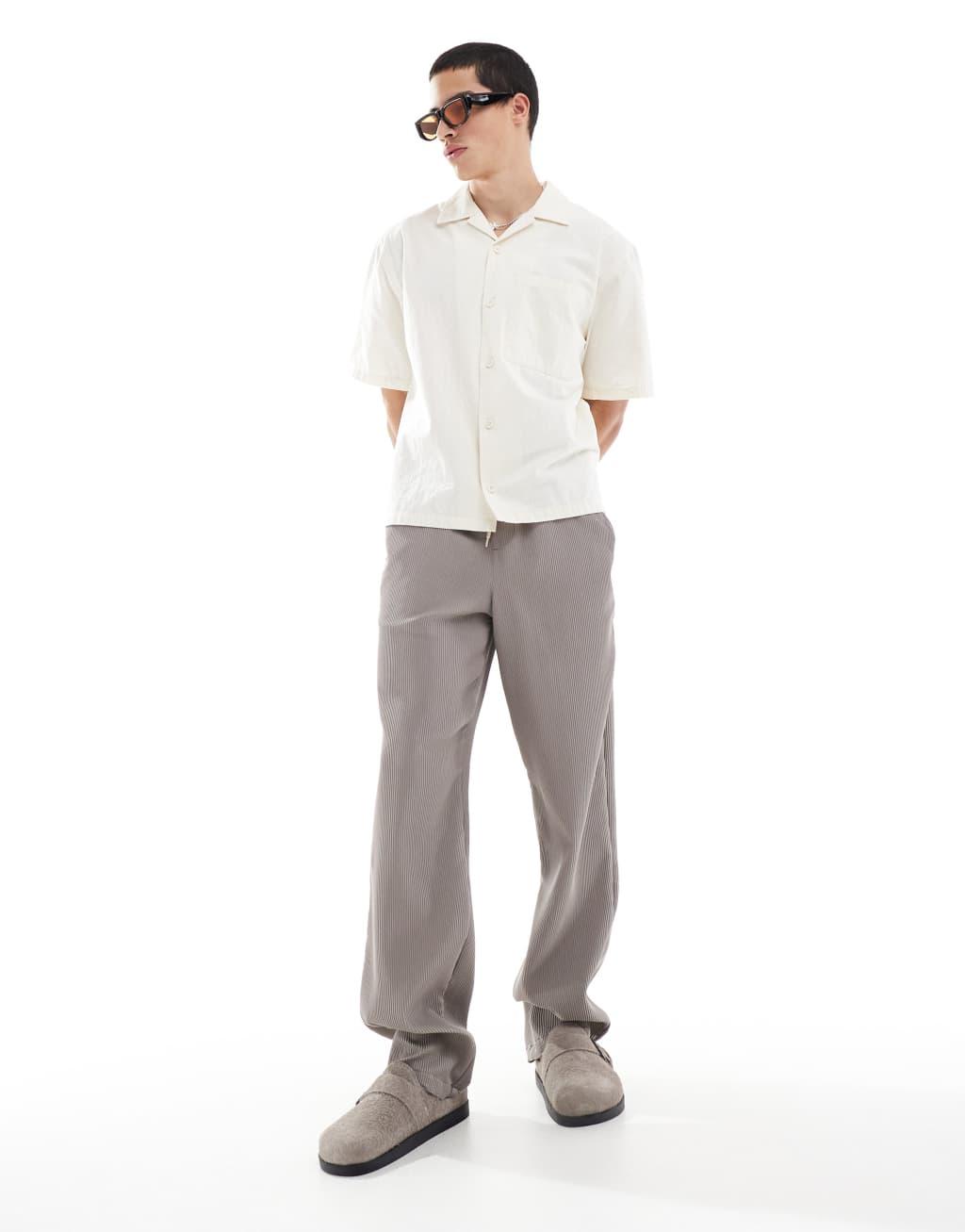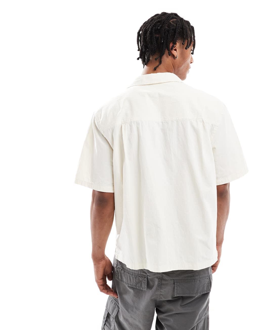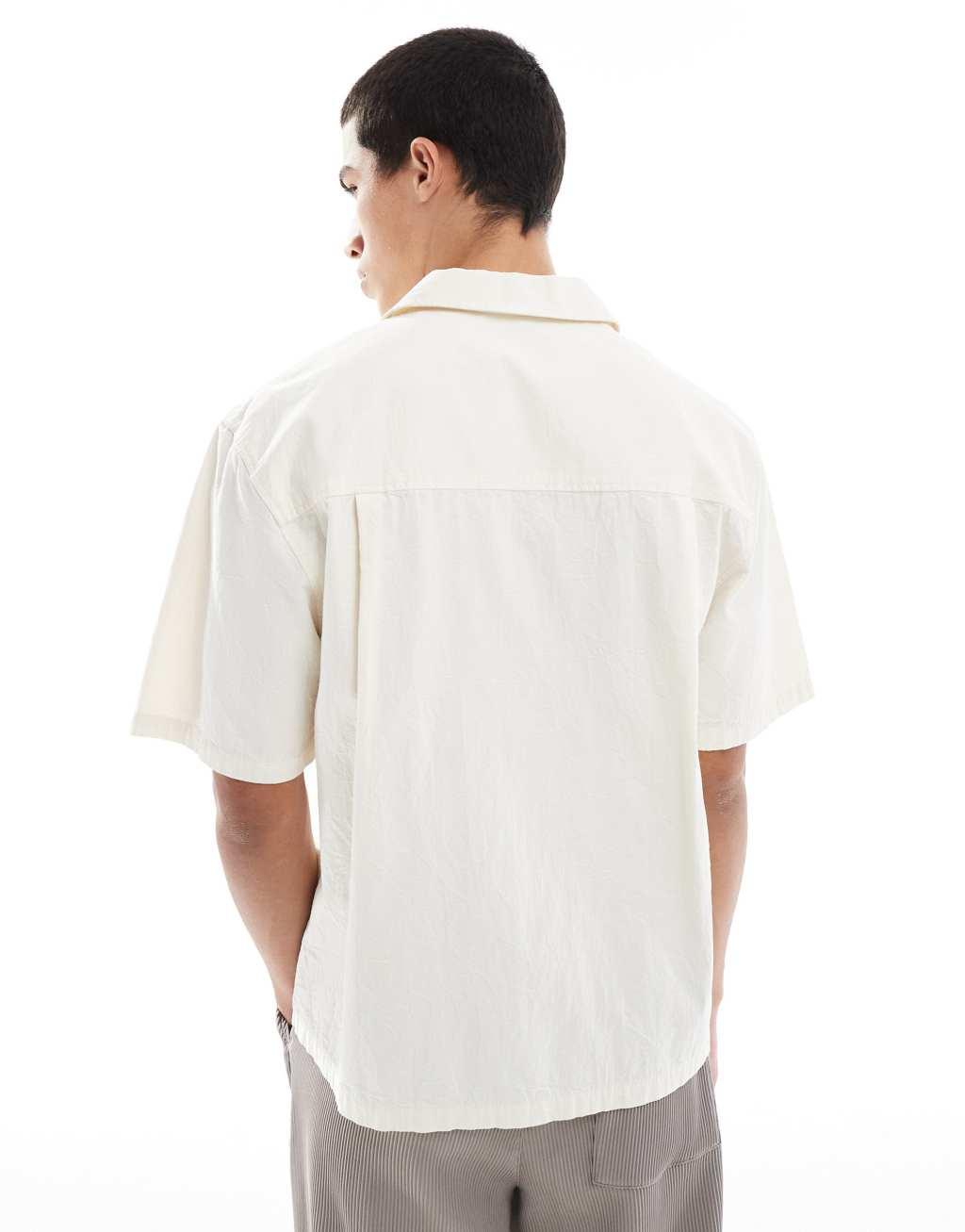 Pull&Bear crinkle textured camp collar shirt in ecru
