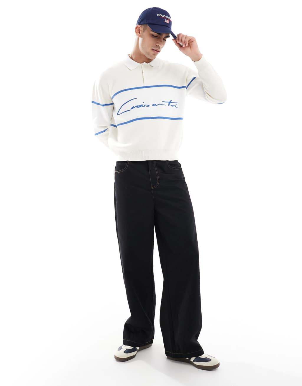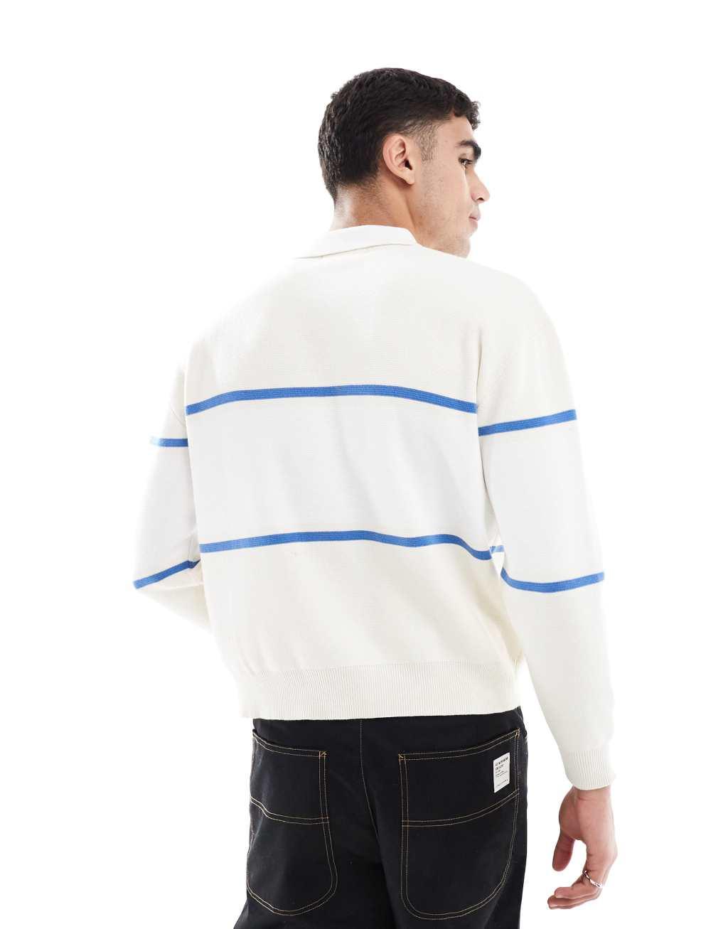 Polo Shirts by Pull&Bear Retro design Polo collar Partial button placket Long sleeves Relaxed fit