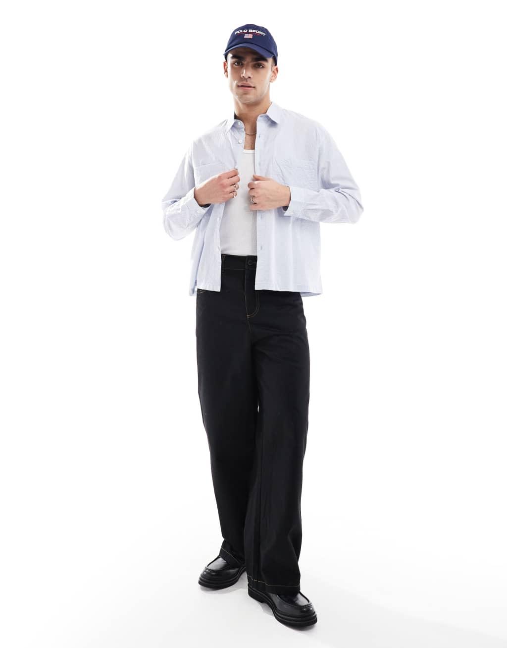 Pull&Bear long sleeve textured check shirt in gray