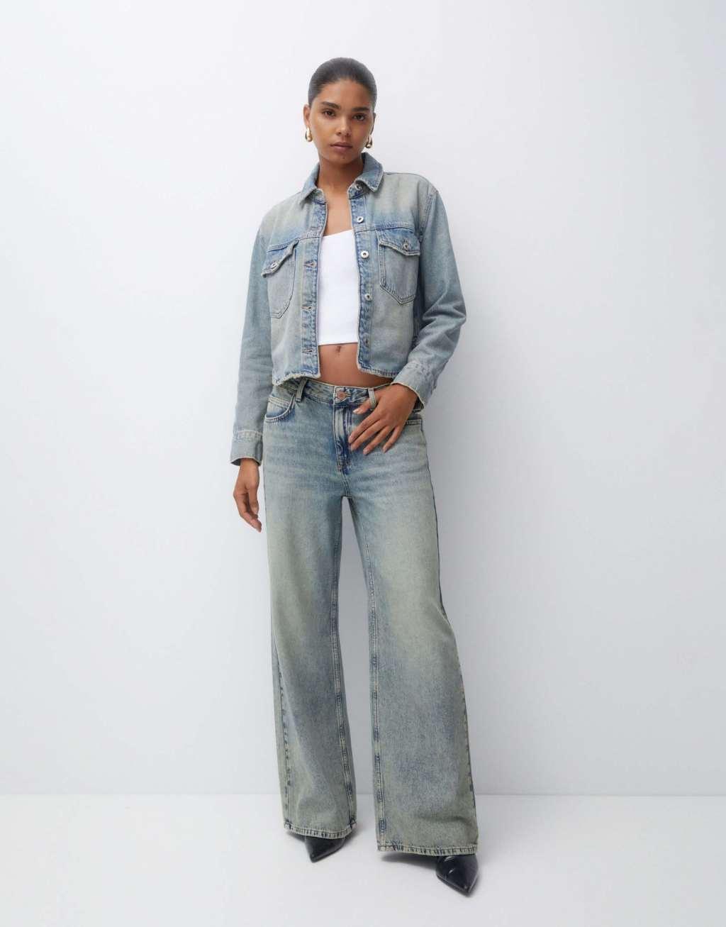 Jeans by Pull & Bear Join the jean scene Wide leg High rise Belt loops Five pockets Branded patch on back