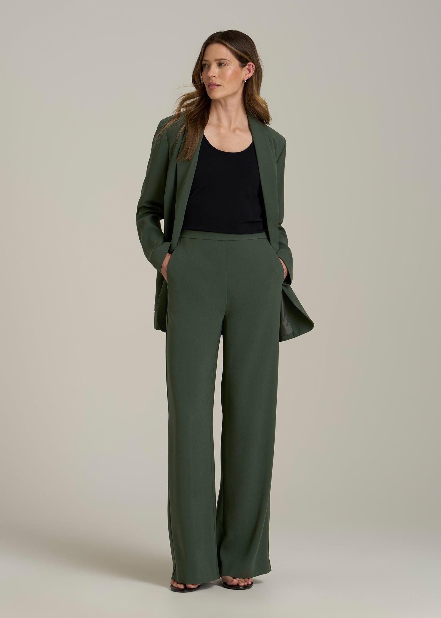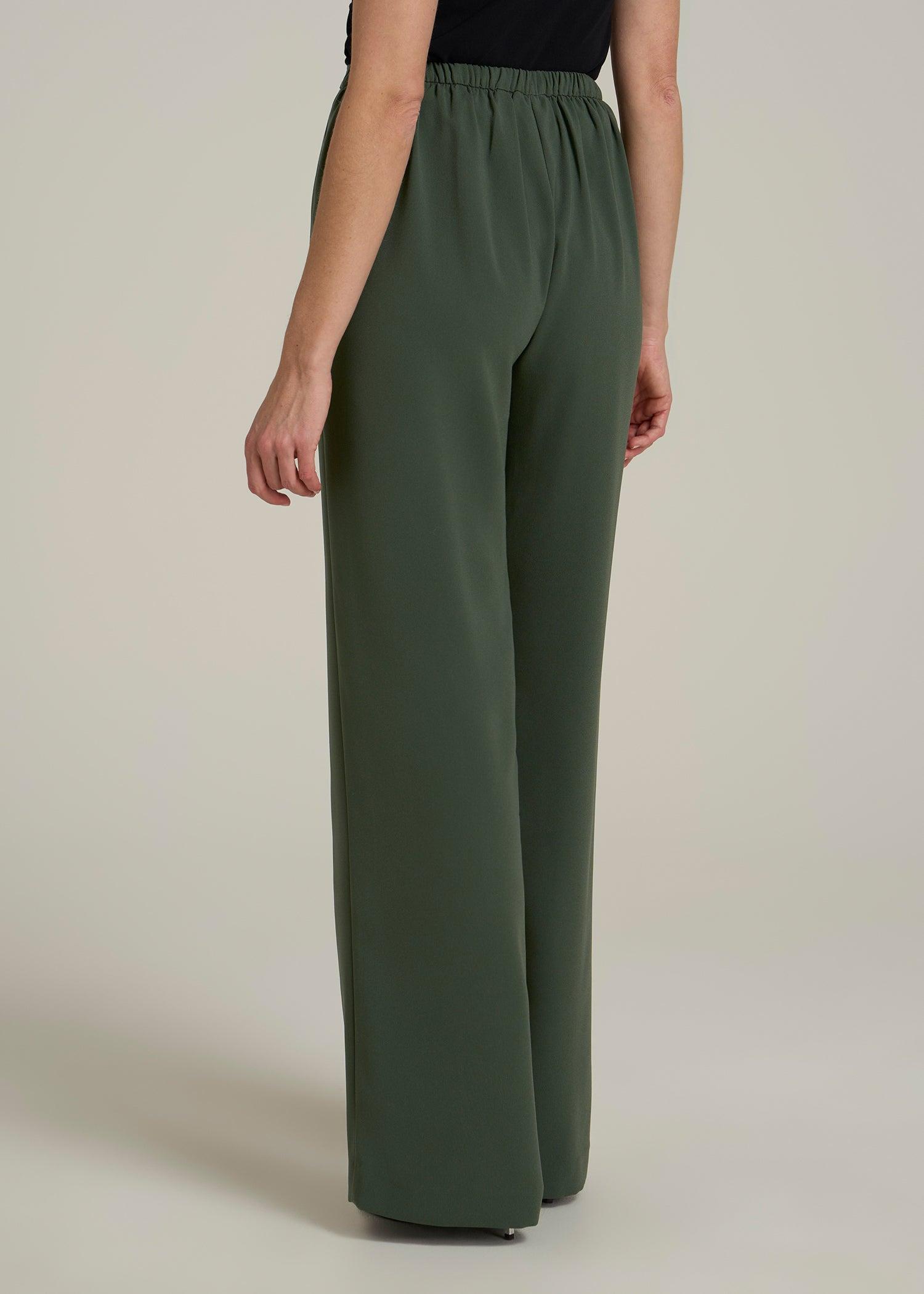 Stride with confidence in our Pull On Crepe Ultra Wide Pant. These tall women's pants redefine comfort with their elastic waist and wide fit, making them an instant staple in both your casual and dress wardrobes.