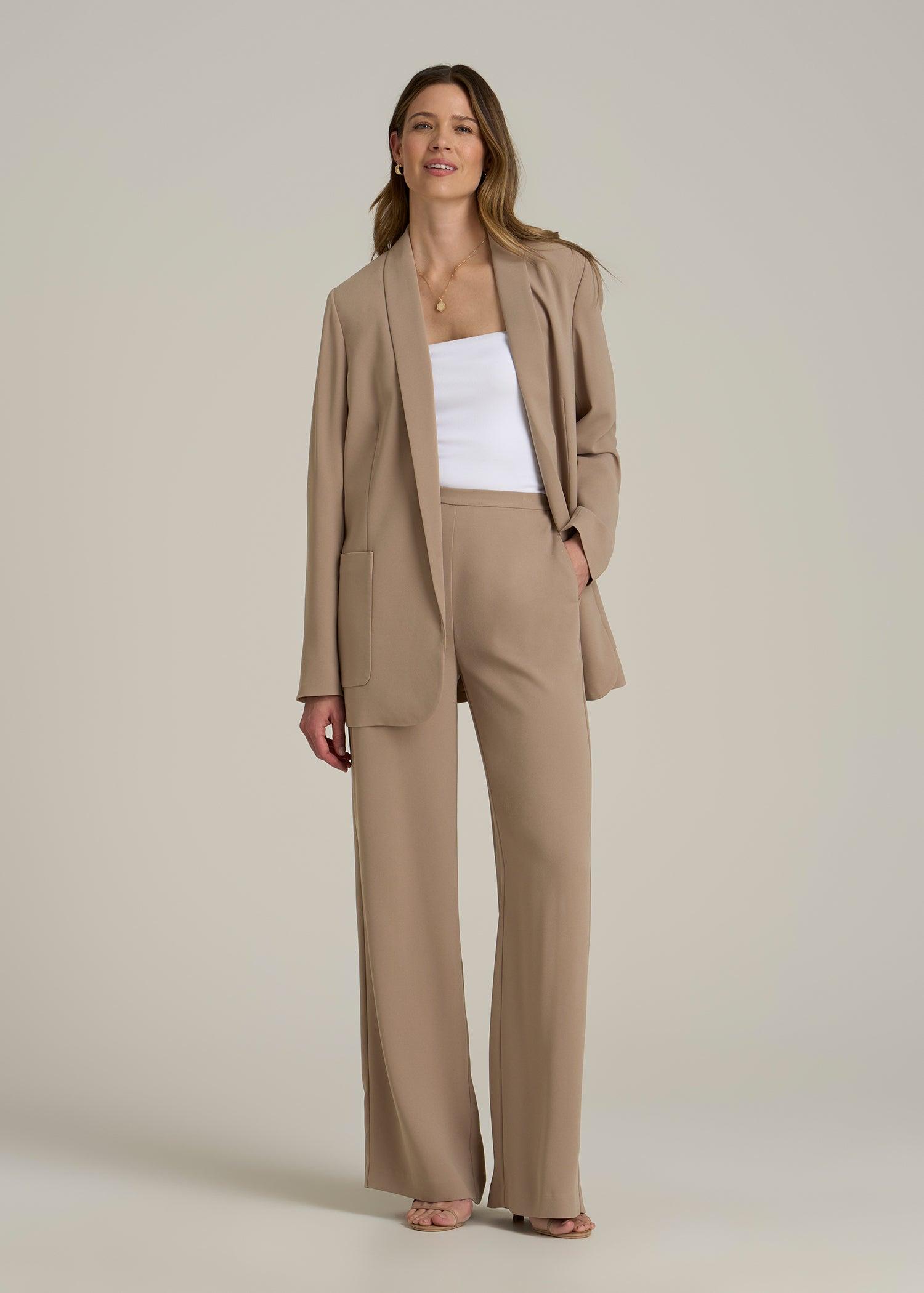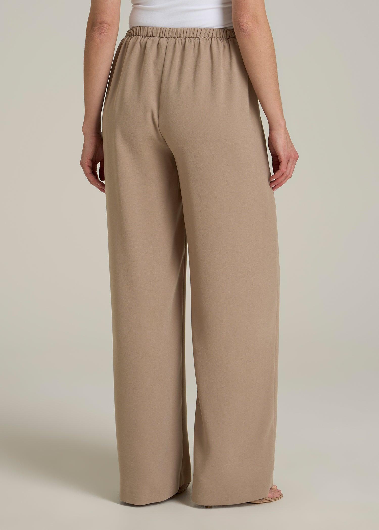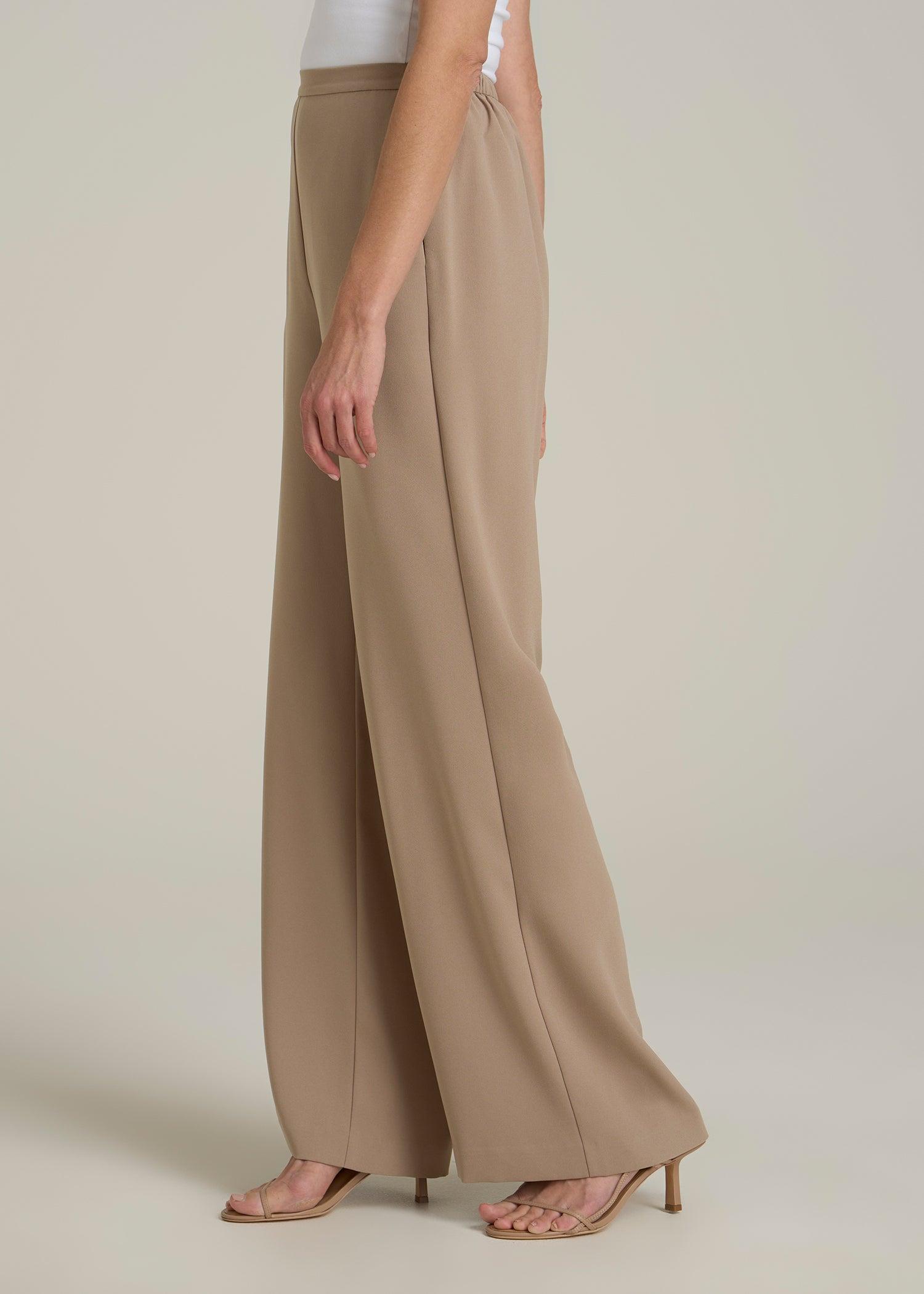 Stride with confidence in our Pull On Crepe Ultra Wide Pant. These tall women's pants redefine comfort with their elastic waist and wide fit, making them an instant staple in both your casual and dress wardrobes.