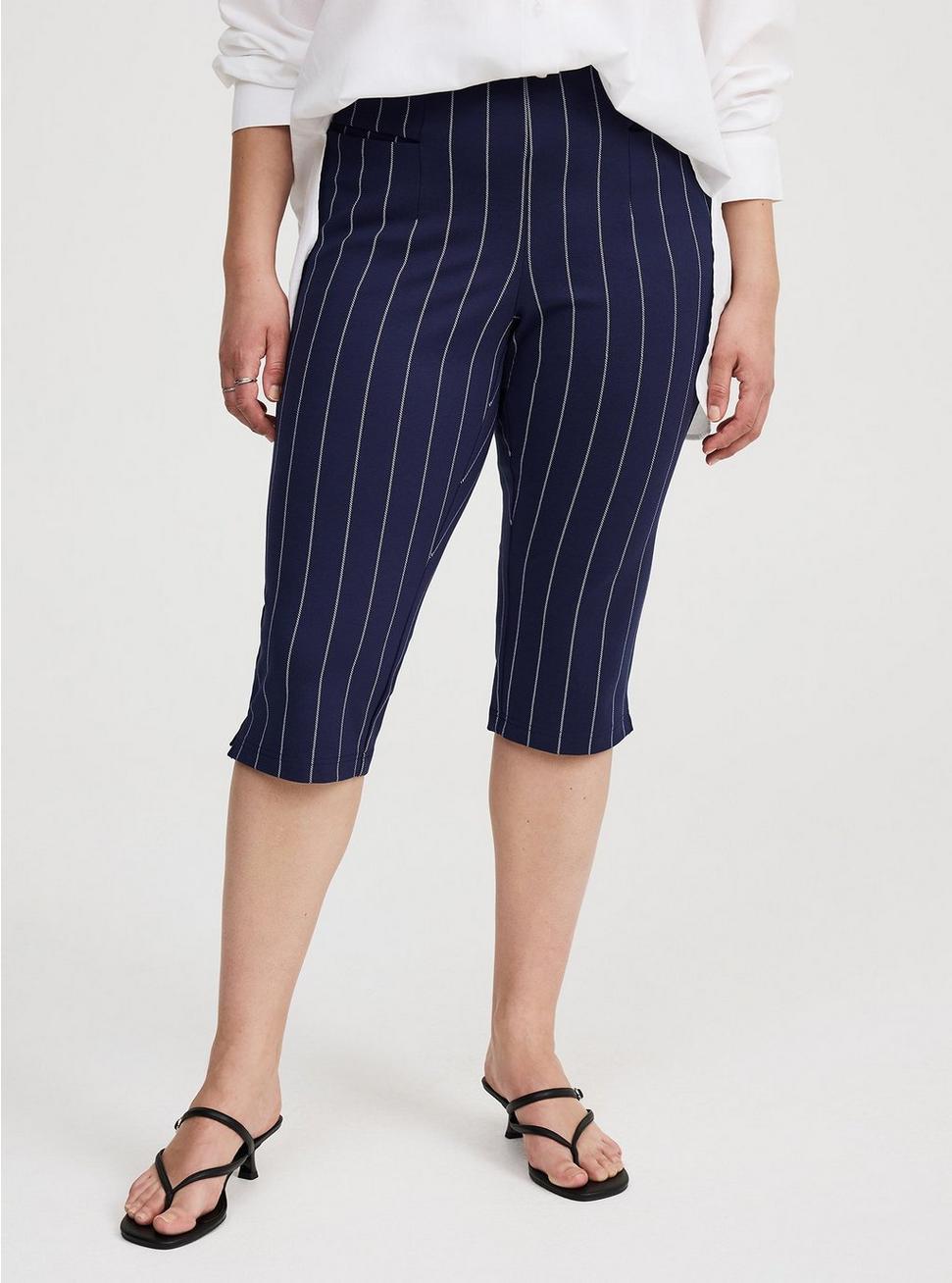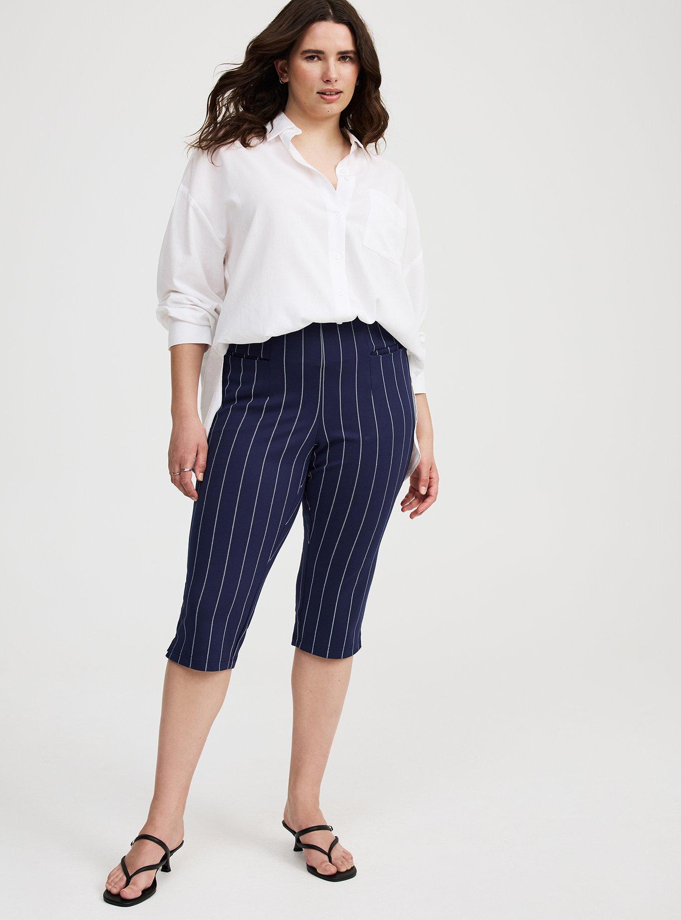 FITMeasures 22'' inseam (size 2). MATERIALS + CARELuxe Ponte knit fabric: Our signature work (any) wear fabric with office-approved tailoring, WFH stretch and comfort, and curve-loving hold. Plus, it’s machine washable!Stretch level: Maximum68% Rayon, 28% Nylon, 4% Spandex.Machine wash cold. Tumble dry low.Imported.DETAILSPull-on waist. Tapered leg. Functional pockets.