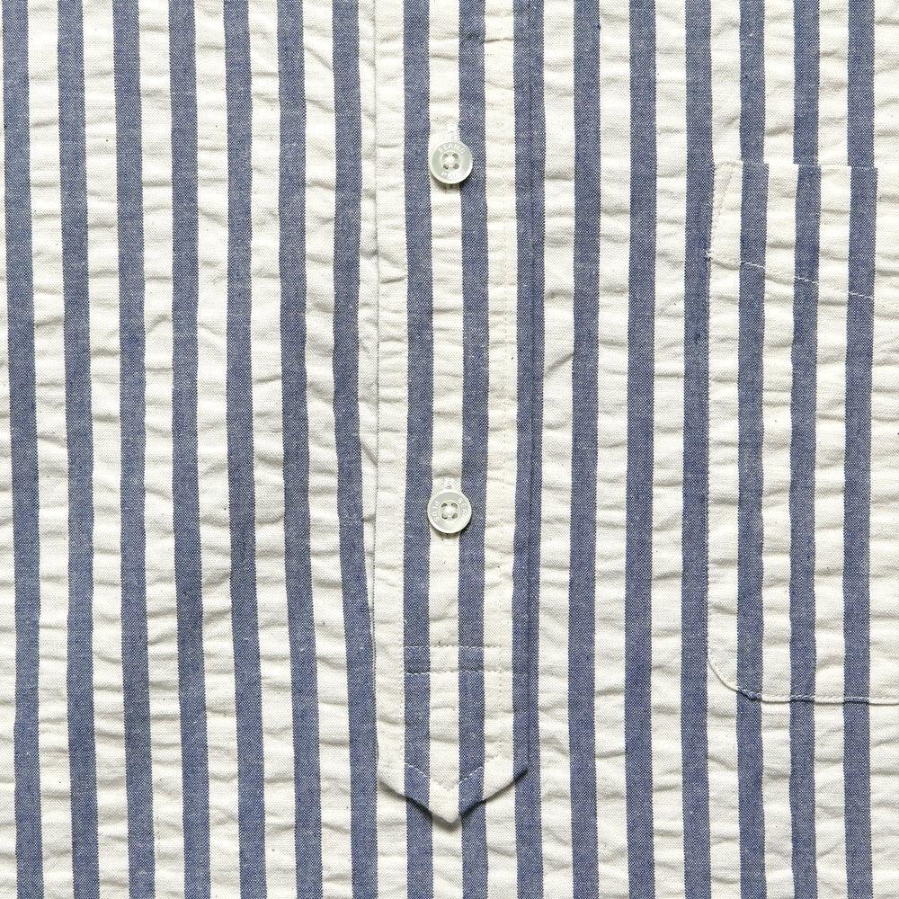 This Pullover from Beams + is crafted from lightweight, breathable cotton seersucker that’s detailed with a classic vertical indigo stripe. It’s tailored with a loose, easygoing fit and finished with a classic four-button placket, oxford collar, a slightly curved hem with side gussets, and a single patch pocket to finish it off.
