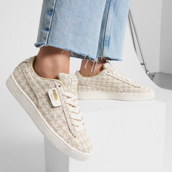 Looking for a way to turn heads? The Basket Seaside Drills sneakers instantly elevate any wardrobe. With its weave-inspired pattern and versatile colorway, you've just found your next favorite pair of kicks. | PUMA Basket Seaside Drills Women's Sneakers in Alpine Snow/White, Size 5.5