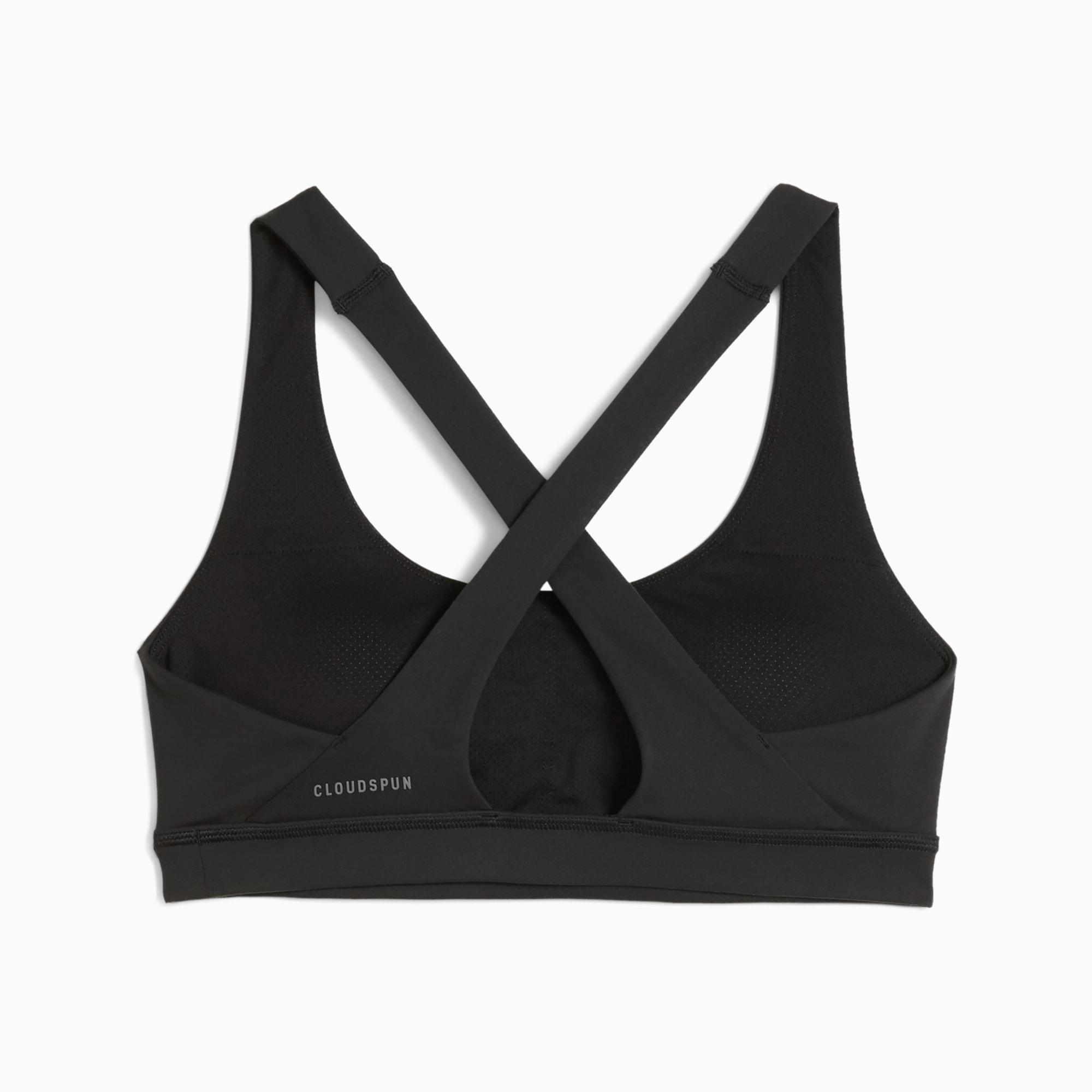 Discover ultimate comfort with CLOUDSPUN. These high-performance pieces are made from ultra-soft materials with four-way stretch for unrestricted movement. Take on your workout with medium-impact support, featuring moisture-wicking dryCELL technology, four-way stretch, and removable padding for a fully adjustable bra. FEATURES & BENEFITS dryCELL: Performance technology designed to wick moisture from the body and keep you free of sweat during exerciseMade with at least 50% recycled materials. Fit: TightMain material: Single jerseySleevelessSupport level: MediumRemovable padding | PUMA Cloudspun Ultra Soft Women's Mid Impact Sports Bra in Black, Size L