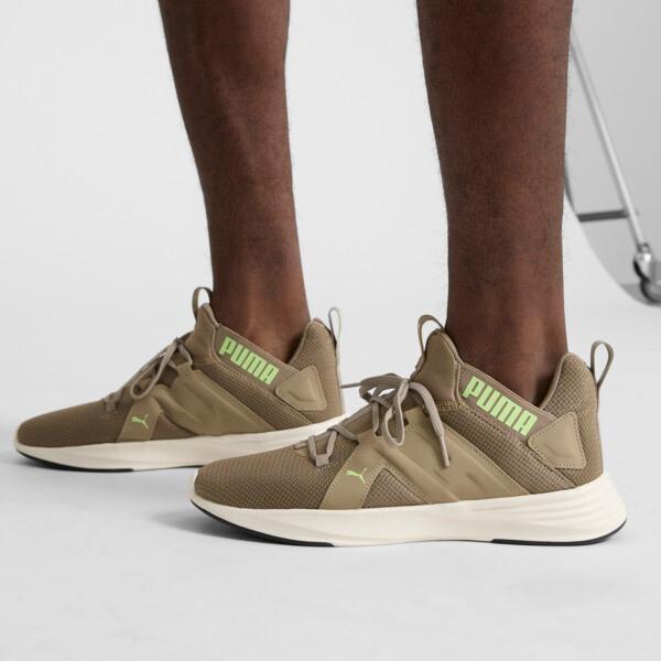 Raise the bar with Contempt Demi, featuring a progressive mid-height silhouette with a clamshell collar for an eye-catching look. The lightweight midsole design and zoned rubber outsole add impact and control for your next training session. | PUMA Contempt Demi Men's Training Shoes in Oak Branch/Fizzy Apple, Size 8.5