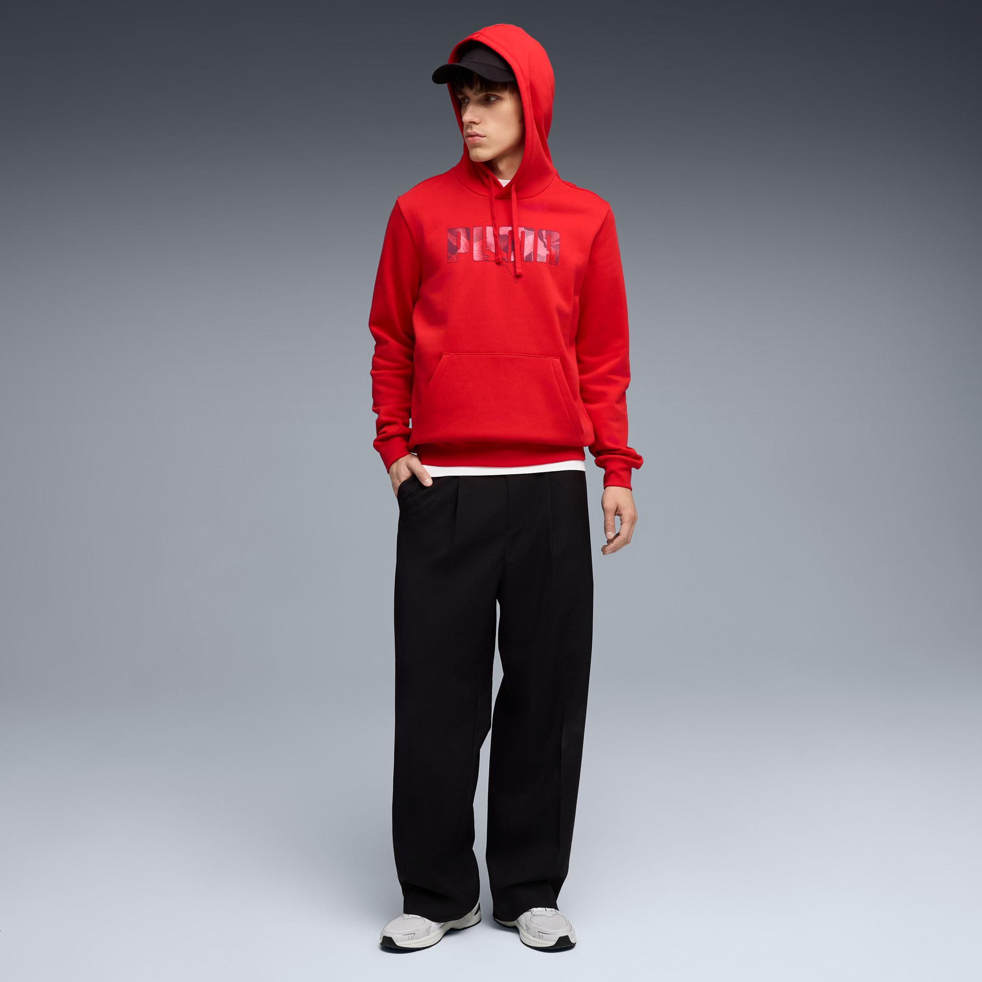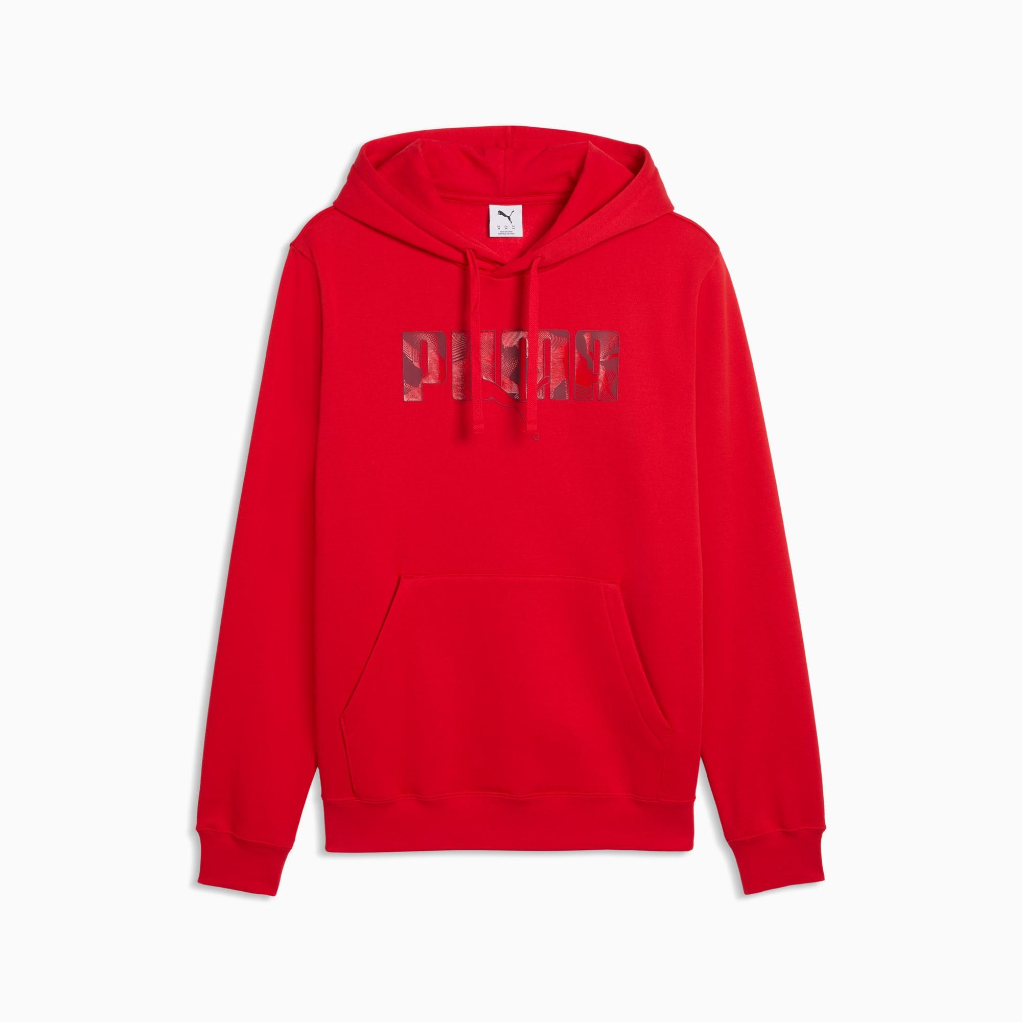 descriptionStylish, comfy, and always on point — PUMA Essentials are made for easygoing days. From lounging, to grabbing a coffee, to days on the move, these pieces offer the perfect balance of comfort and style. Simple, versatile, and built to keep you feeling good all day long.Style: 692028_11Color: For All Time Redmeasure & sizeModel informationModel is 6' 1" tall and is wearing size M.features & benefitsMade with at least 50% recycled materials.detailsFit: RegularMain material type: FleeceHoodedLong sleevesLength: RegularRibbed cuffs and hemPockets: Kangaroo pocketGraphic design details