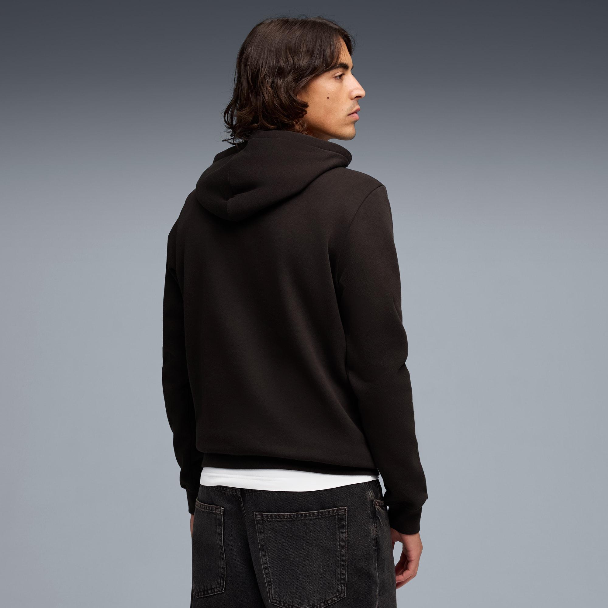 descriptionStylish, comfy, and always on point — PUMA Essentials are made for easygoing days. From lounging, to grabbing a coffee, to days on the move, these pieces offer the perfect balance of comfort and style. Simple, versatile, and built to keep you feeling good all day long.Style: 692028_01Color: PUMA Blackmeasure & sizeModel informationModel is 6' 1" tall and is wearing size M.features & benefitsMade with at least 50% recycled materials.detailsFit: RegularMain material type: FleeceHoodedLong sleevesLength: RegularRibbed cuffs and hemPockets: Kangaroo pocketGraphic design details