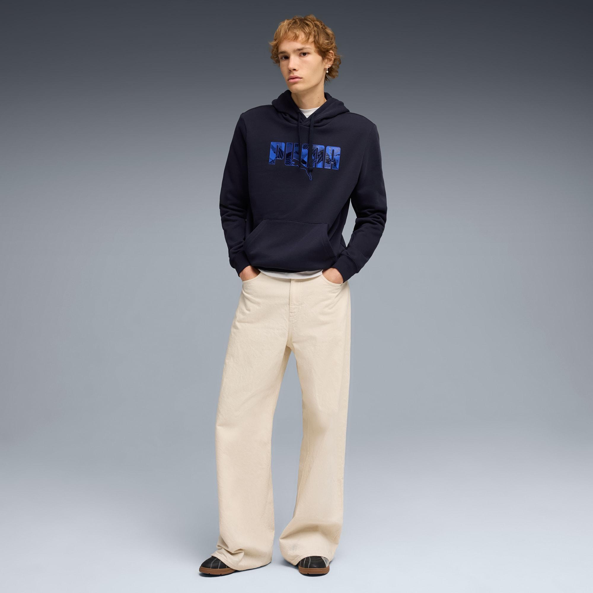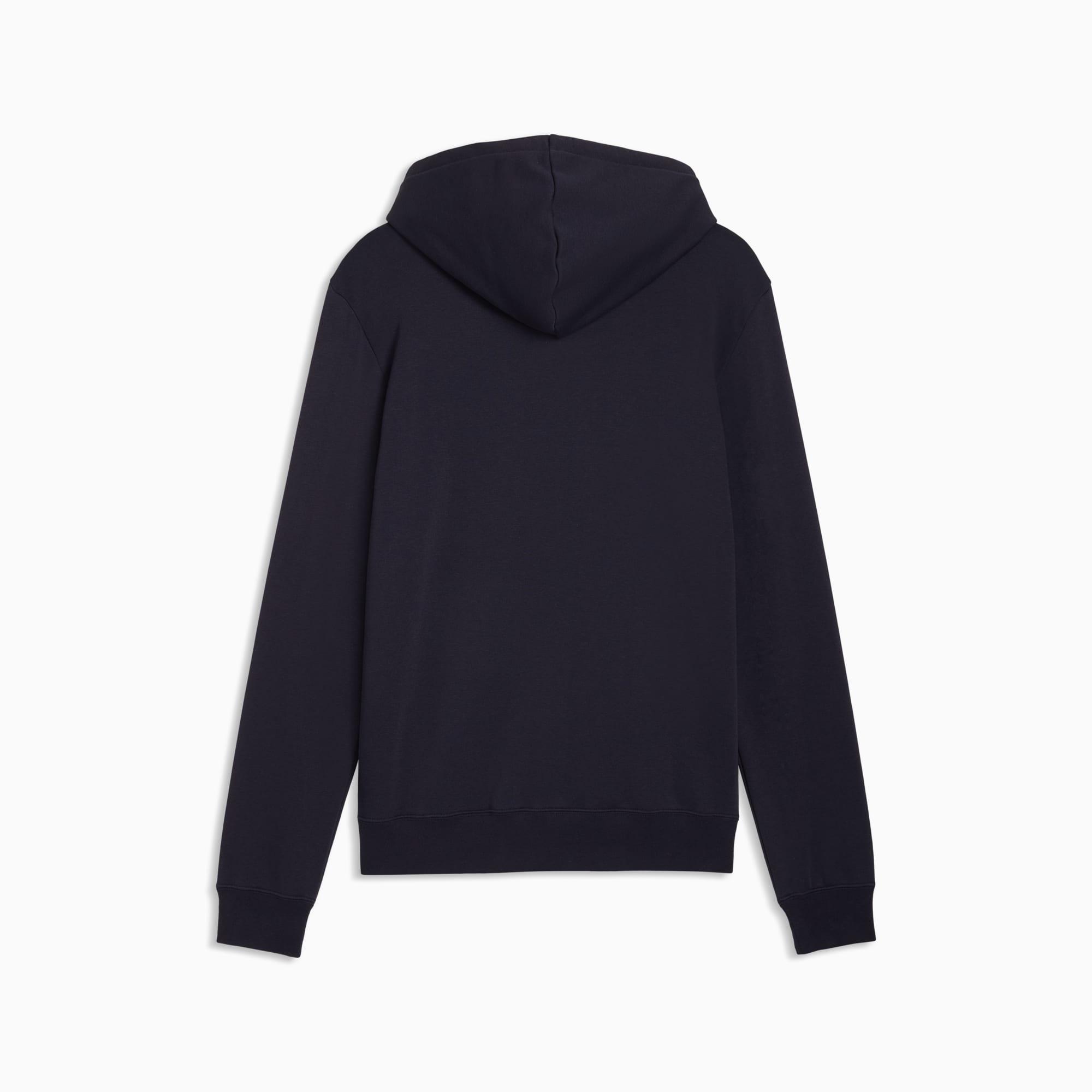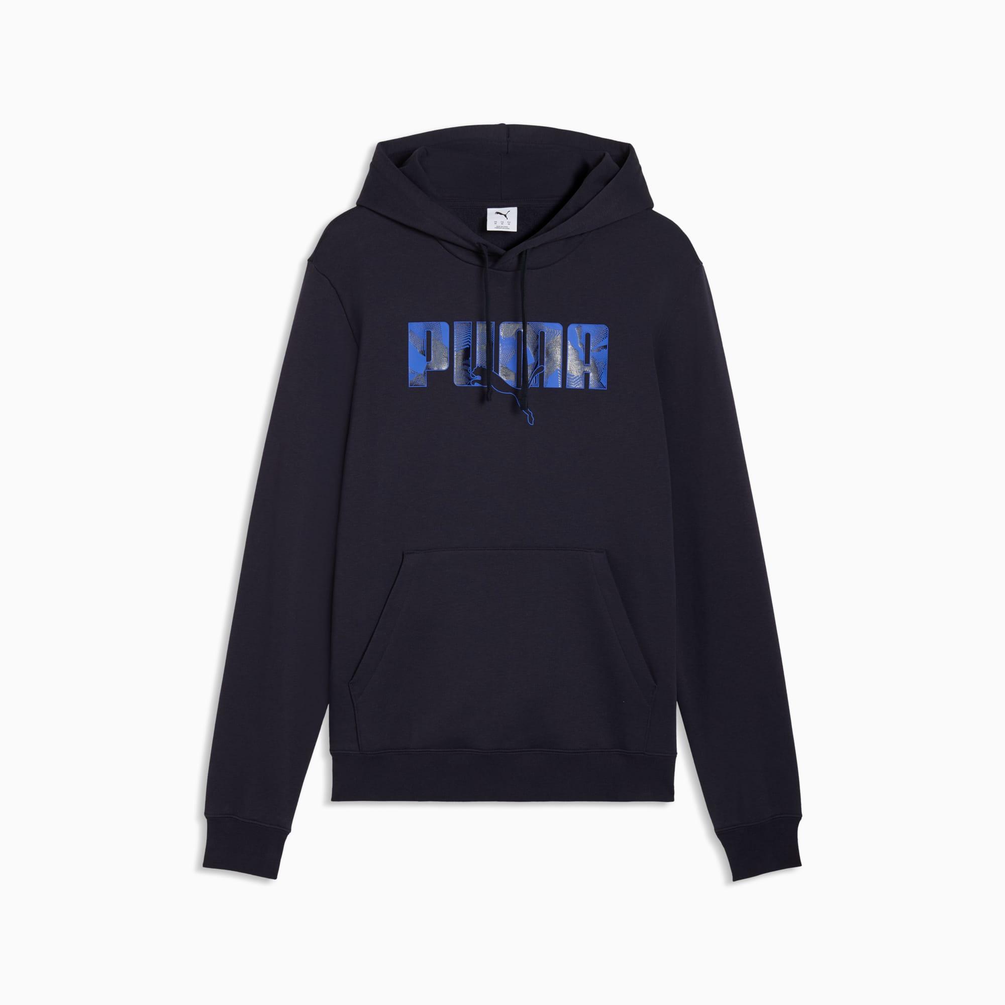 descriptionStylish, comfy, and always on point — PUMA Essentials are made for easygoing days. From lounging, to grabbing a coffee, to days on the move, these pieces offer the perfect balance of comfort and style. Simple, versatile, and built to keep you feeling good all day long.Style: 692028_16Color: New Navymeasure & sizeModel informationModel is 6' 1" tall and is wearing size M.features & benefitsMade with at least 50% recycled materials.detailsFit: RegularMain material type: FleeceHoodedLong sleevesLength: RegularRibbed cuffs and hemPockets: Kangaroo pocketGraphic design details