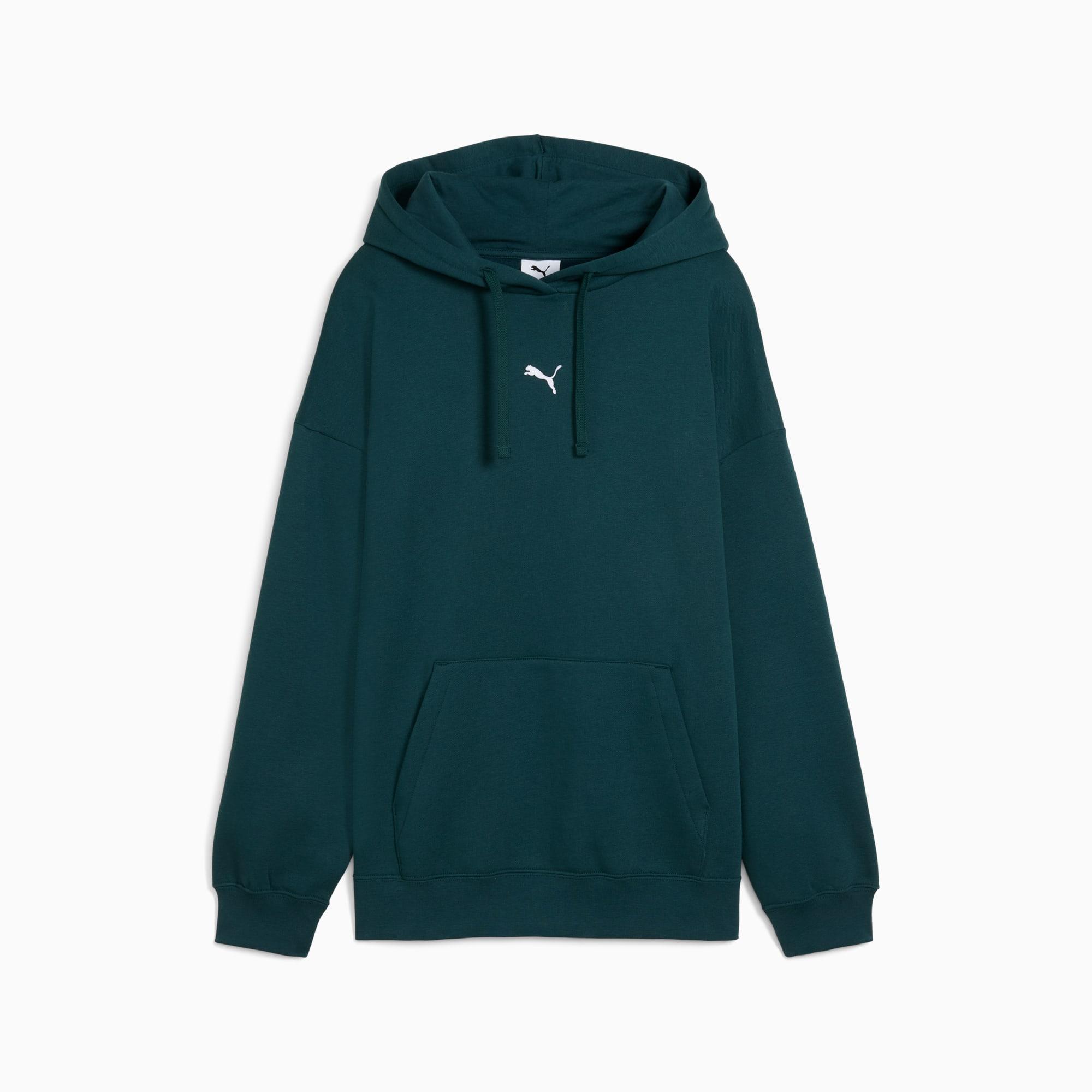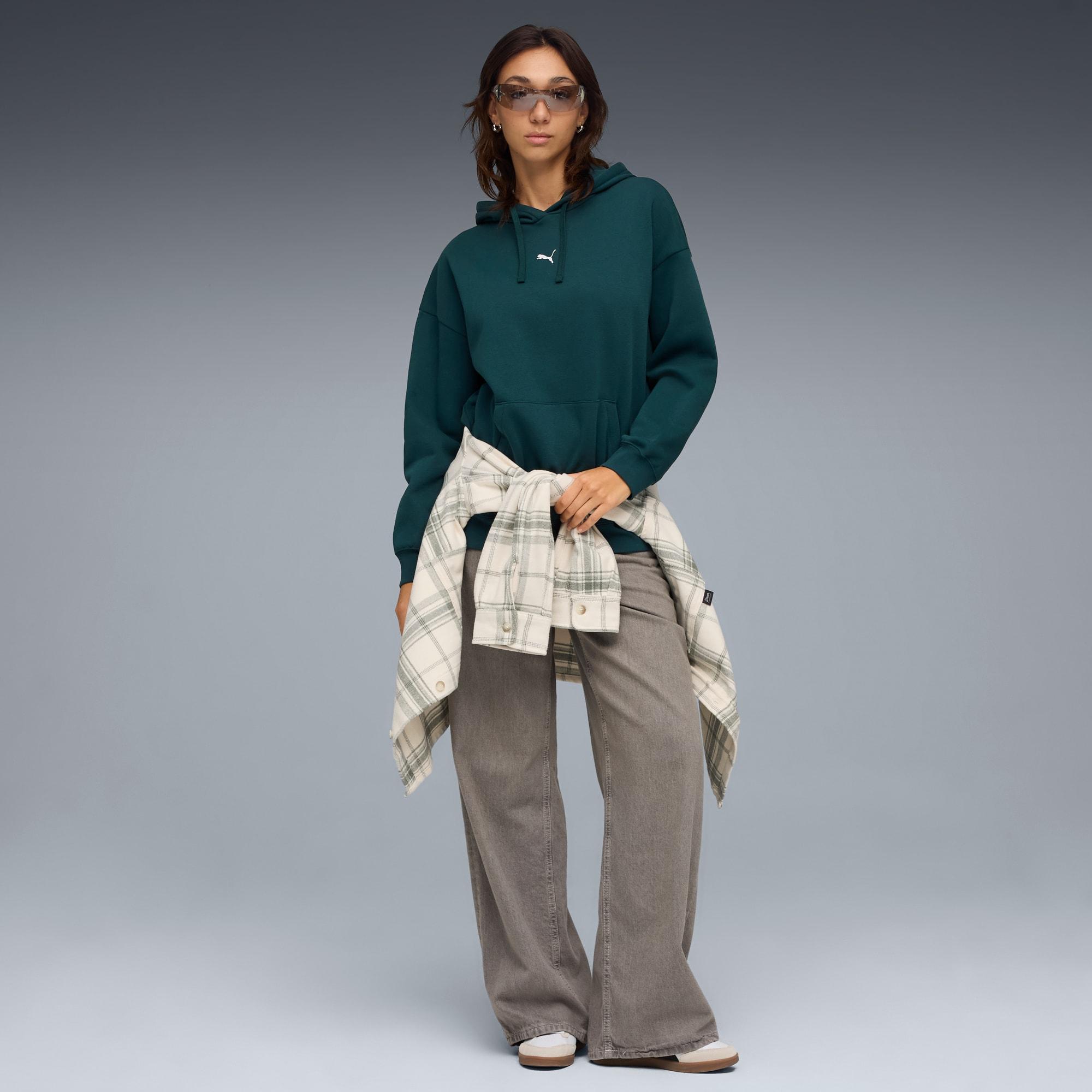 descriptionEmbrace effortless style with this oversized PUMA hoodie. Featuring a Cat Logo embroidery, adjustable hood with drawcords, and ribbed cuffs and hem, it's perfect for any casual day.Style: 685398_75Color: Green Terrainfeatures & benefitsMade with at least 50% recycled materialsdetailsOversized fitMain material: FleeceRegular lengthHoodLong sleevesKangaroo PocketPUMA branding detailsmaterials & careMaterial informationHood Lining: 100% cottonShell: 66% cotton, 34% polyesterRib: 97% cotton, 3% elastaneCare instructionsWash with similar coloursDo not dry cleanWash and iron inside outUse detergent for coloursExclusive of Decoration