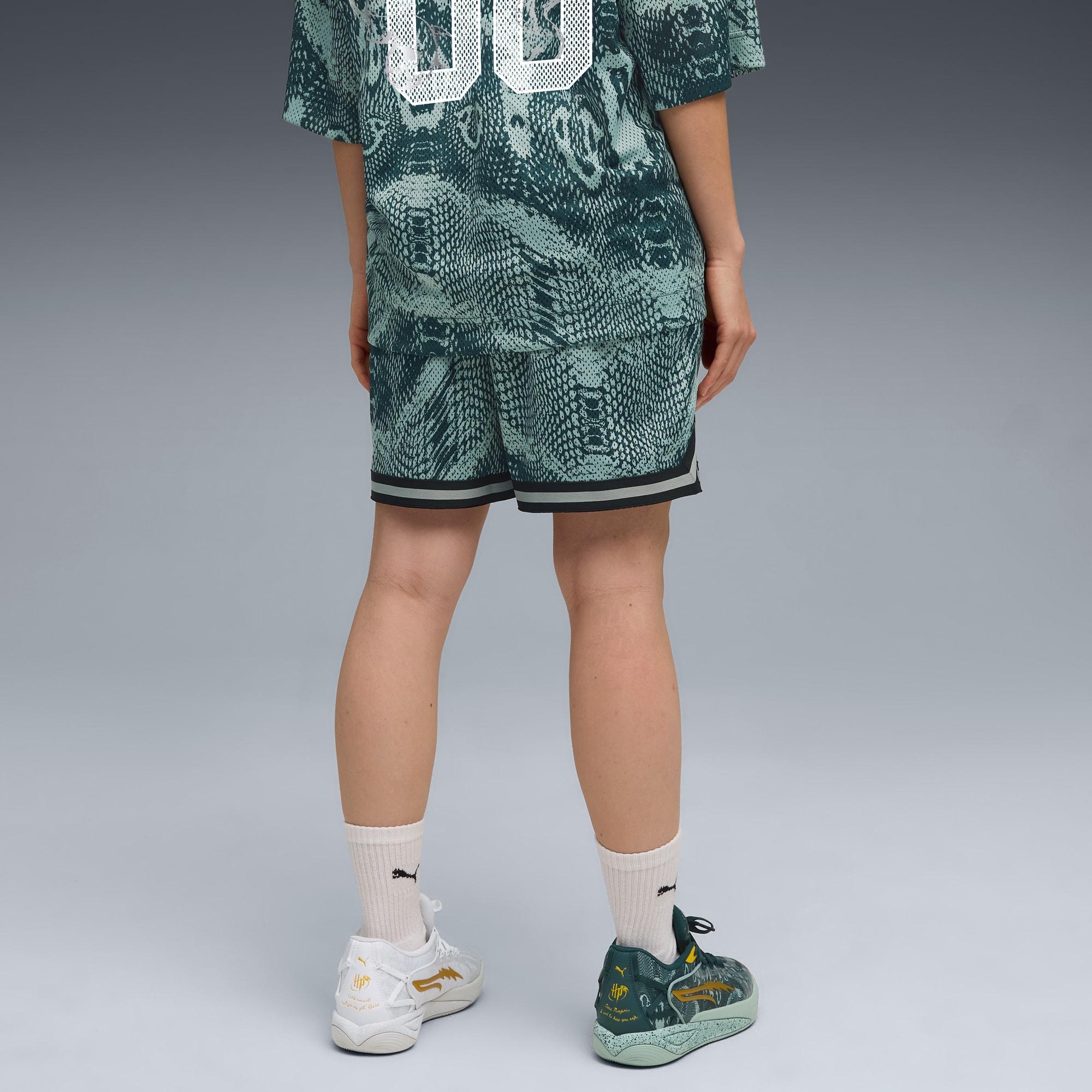 The all-new PUMA HOOPS x HARRY POTTER™ collection is a mysterious mashup of basketball and the beloved fantasy series. Featuring a full range of apparel, footwear, and accessories, this collection is ready for anything, whether you live in the magical world or the muggle world. Apparel designs include basketball mesh shorts and comfy pre-game sweat gear, all with Harry Potter™–inspired graphics.Made with 100% recycled material excluding trims & decorationsFit: RelaxedLength: Above knee lengthBottom: Open bottomRise: MediumHARRY POTTER™ brandingPUMA branding details