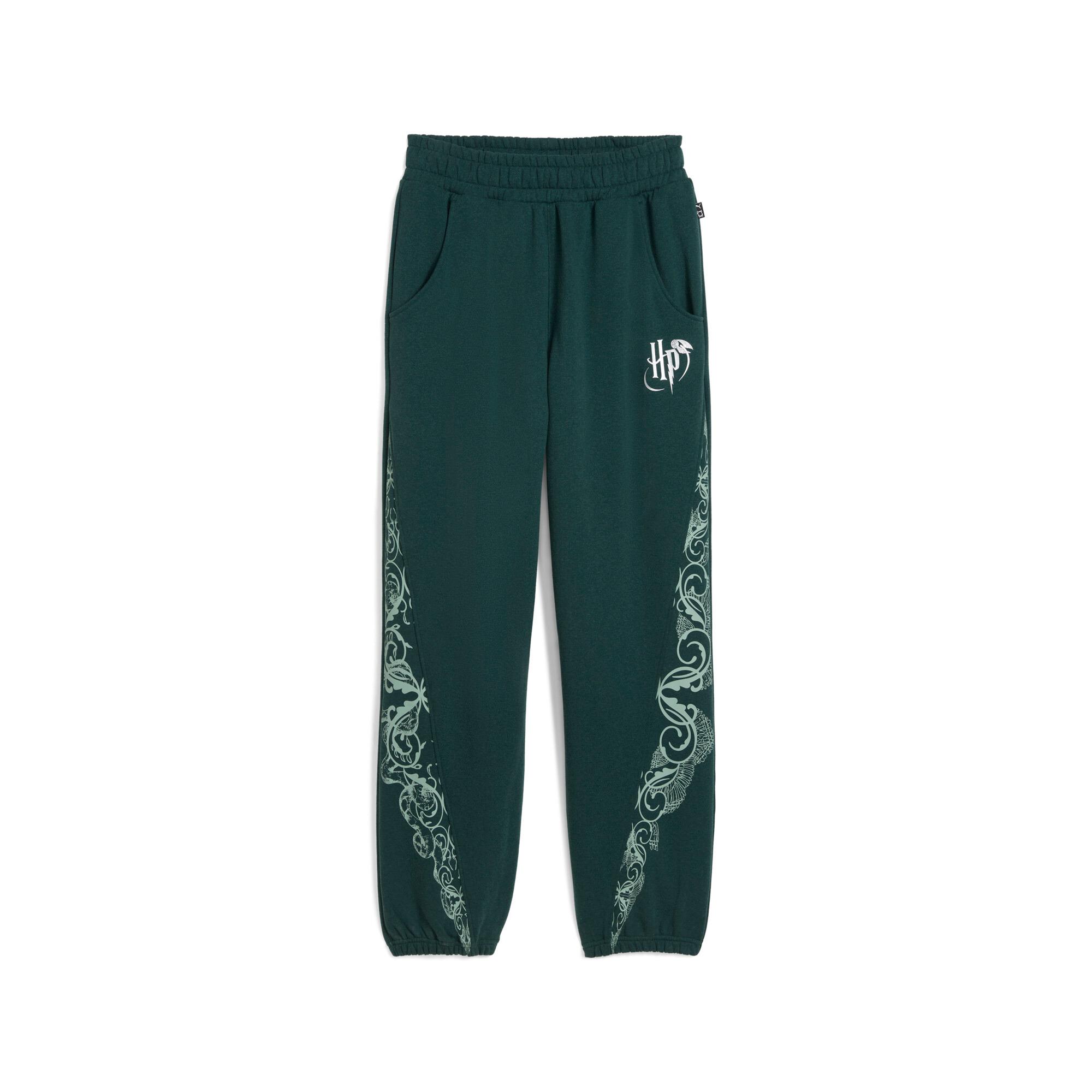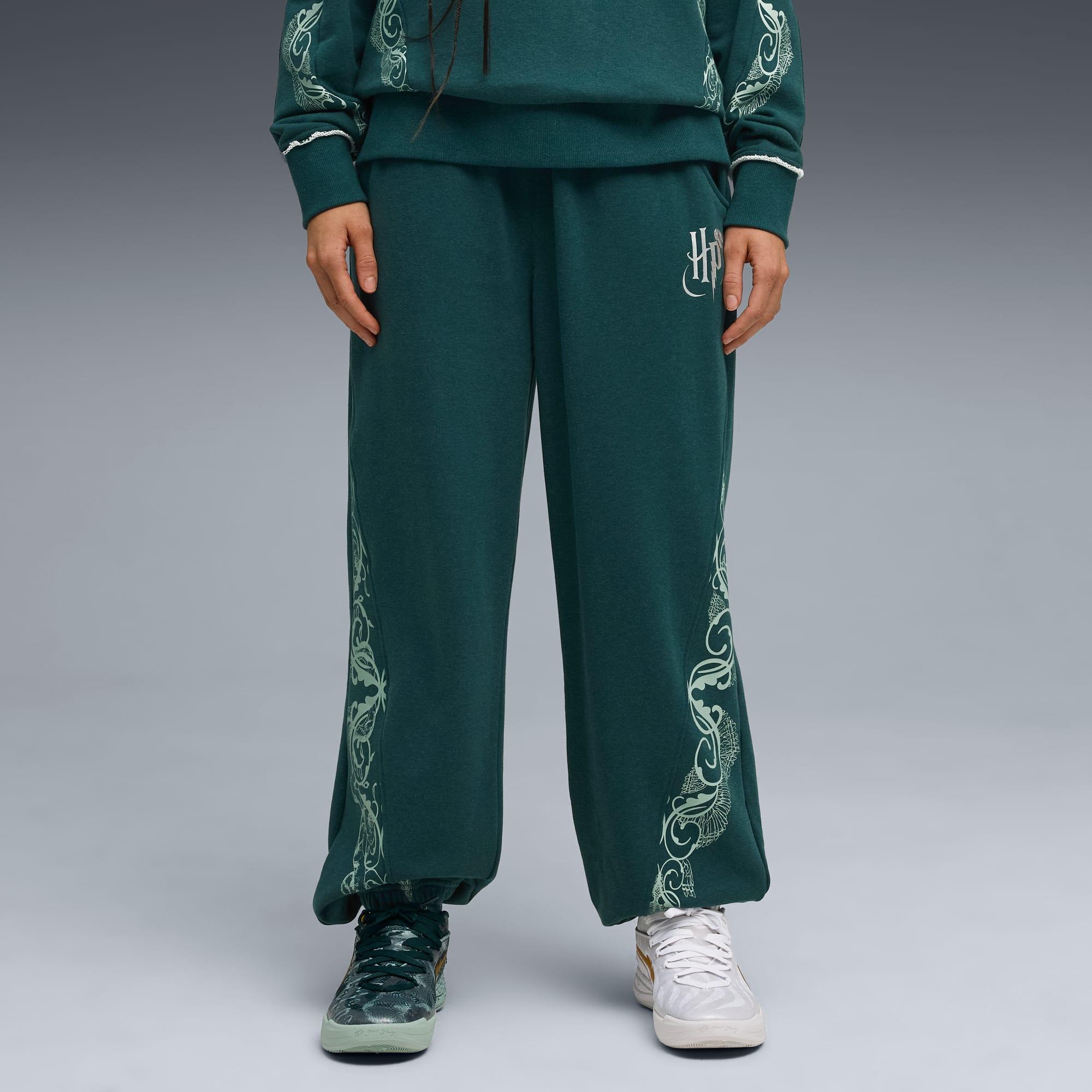 The all-new PUMA HOOPS x HARRY POTTER™ collection is a mysterious mashup of basketball and the beloved fantasy series. Featuring a full range of apparel, footwear, and accessories, this collection is ready for anything, whether you live in the magical world or the muggle world. Apparel designs include basketball mesh shorts and comfy pre-game sweat gear, all with Harry Potter™–inspired graphics.Made with at least 20% recycled cottonFit: RelaxedBottom: Closed bottomLength: Full LengthRise: MediumPockets: Side pocketsHARRY POTTER™ branding details