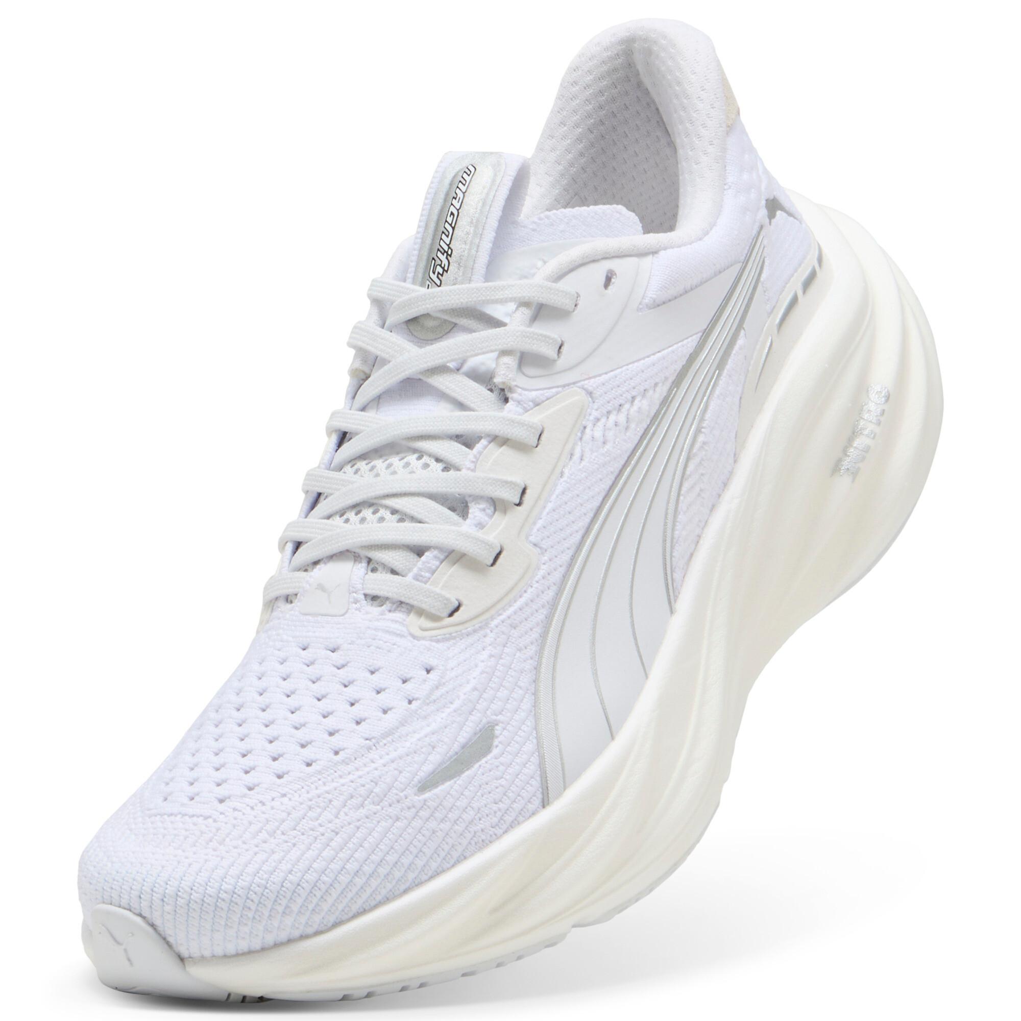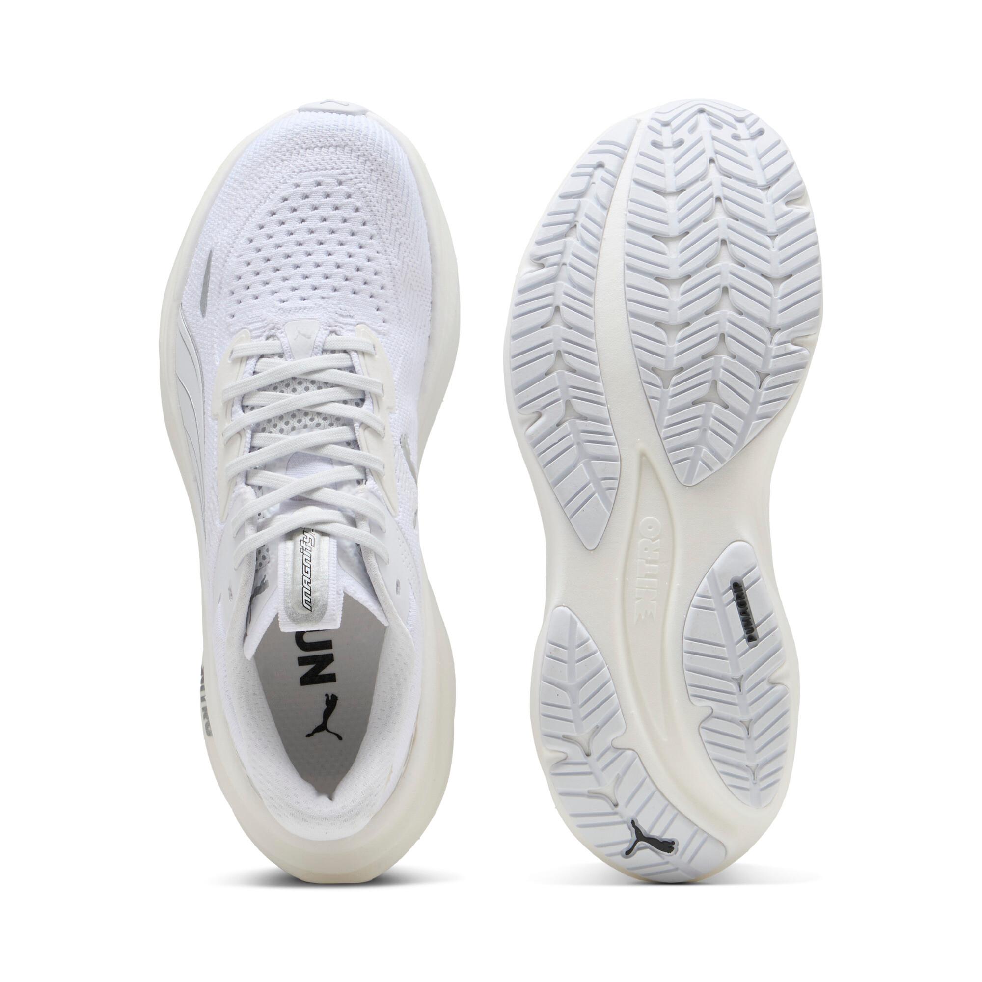 Magnify 3 is built for supreme cushioning and all-day comfort. Designed for any run where softness and support matter most, it features a breathable engineered mesh upper and stacked NITROFOAM™ cushioning for a smooth, responsive ride. Whether you're going the distance or running purely for the joy of it, this shoe is made to magnify your comfort and keep you moving.BREATHABILITY: Premium engineered knit material engineered for breathability and stretch, reinforced with PWRTAPE for durability and lockdownNITROFOAM™: Innovative nitrogen-infused foam technology that uses premium raw materials to provide maximum energy return PUMAGRIP: Outsole is made of durable rubber compound for multi-surface tractionThe upper of the shoes is made with at least 30% recycled materials.Fit: RegularToe type: RoundedFastener: LacesHeel type: FlatHeel-to-toe drop: 10mmStack Height: 40mm / 30mmWeight (UK4.5): 215gRecommended for neutral pronators