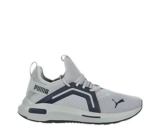 PUMA Softride Enzo 5 Men's Sneaker - Grey Ramp up your run in the Softride Enzo 5 Sneaker from PUMA. Featuring a breathable mesh & synthetic upper embossed with the PUMA branding, this sporty Slip-On also has a dual pull tabs for easy entry. The Softride EVA technology offers extra cushioning, while the durable outsole provides excellent traction. Mesh/synthetic upper Slip-On w/optional laces TPU cage Softride EVA technology Traction outsole