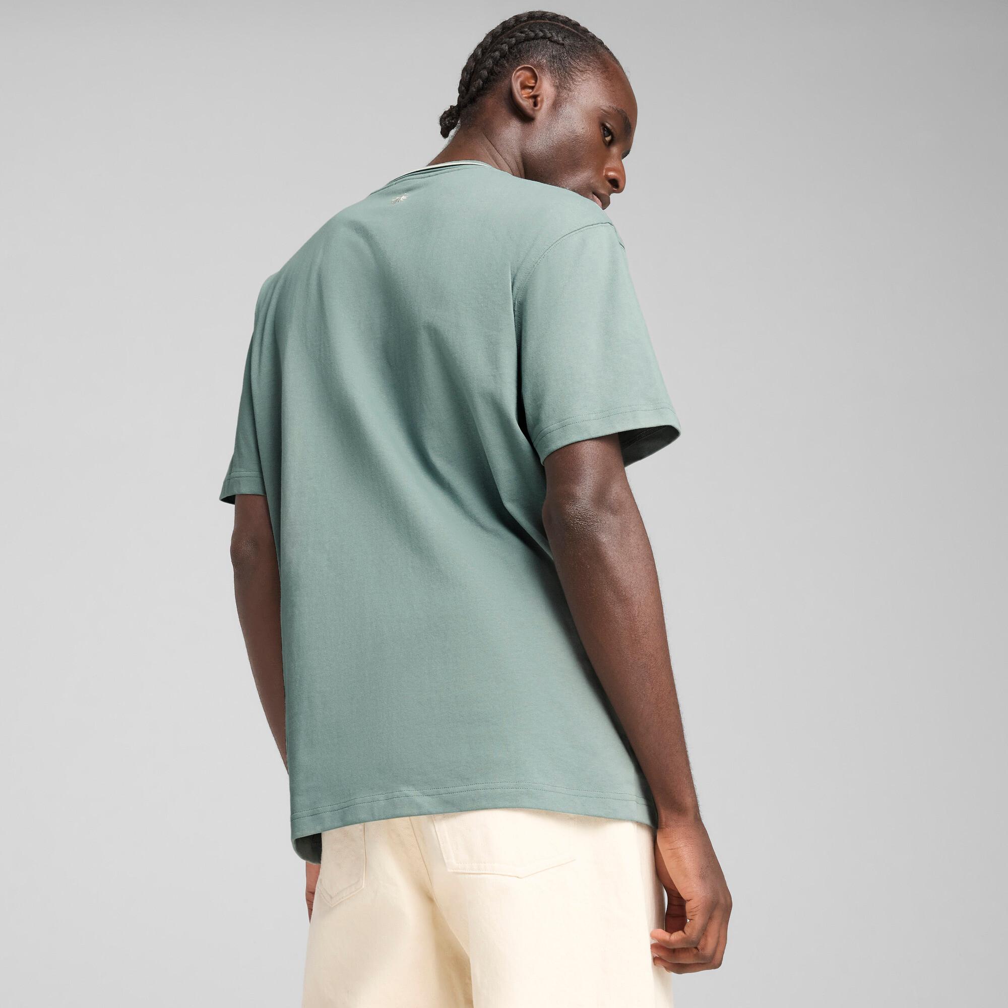Immerse Yourself In Moroccan Vibes With This Tee From Puma's Palais Artisan Collection. Featuring Bold Graphics And A Relaxed Fit, It Offers A Unique Blend Of Tradition And Modernity. Features & Benefits Made With At Least 20% Recycled Cotton Details Relaxed Fitsingle Jersey Fabricregular Lengthcrew Neckshort Sleevespuma Branding Details | | PUMA PALAIS ARTISAN Men's T-Shirt in Green, Size XXL