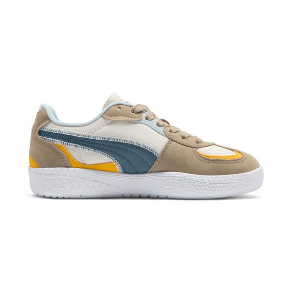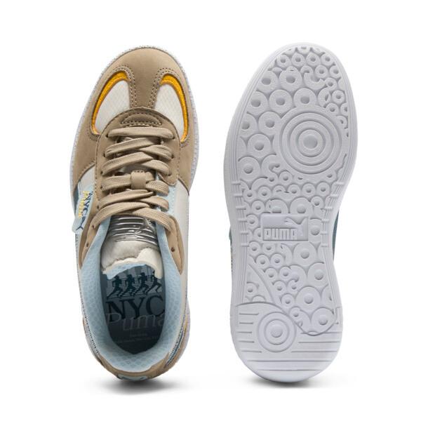 Looking for the sweet life? Look no further. An â80s classic, the Palermo, is back and better than ever, revitalized as the Palermo Lamoda. This low-profile, low-key sneaker will put the finishing touches on any outfit. Dress it up for something smart casual. Or dress it down for something comfortably chic. This execution features a soft grain leather base, a synthetic leather formstrip and suede overlays, in addition to NYC branding. | PUMA Palmero Lamoda NYC Women's Sneakers in Oak Branch/Grey Skies/Tangerine, Size 7