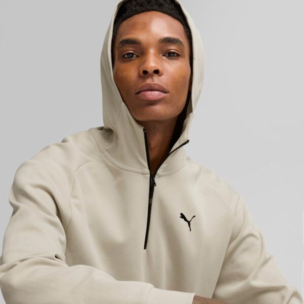 Made For Looking Good, This Full-Zip Hooded Top Lets You Own Any Room. Keep It Casual Or Dress It Up, The Soft Cotton Blend And Kangaroo Pocket Make A Bold Statement. Features & Benefits Made With At Least 20% Recycled Cotton Details 260 Gsmlong Sleevehalf Zipkangaroo Pocketpuma Branding Details | | PUMA RAD/CAL Men's Hooded Half-Zip in Desert Dust, Size XS