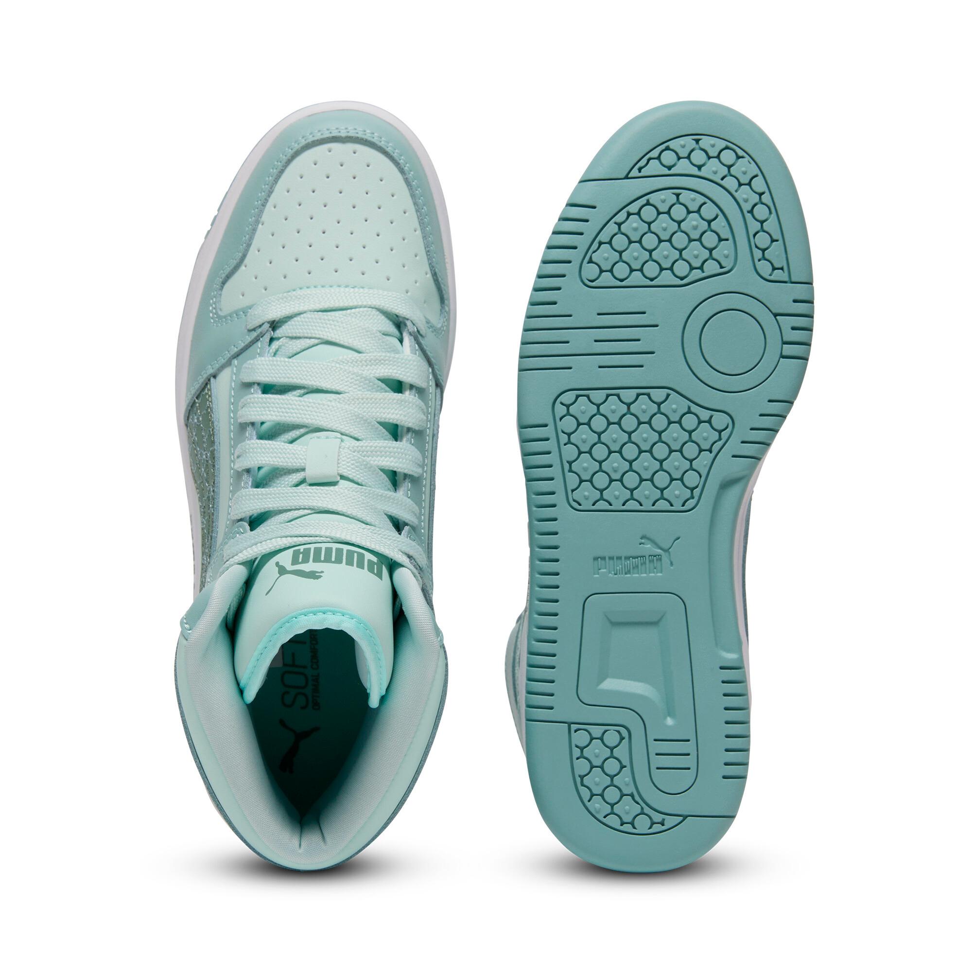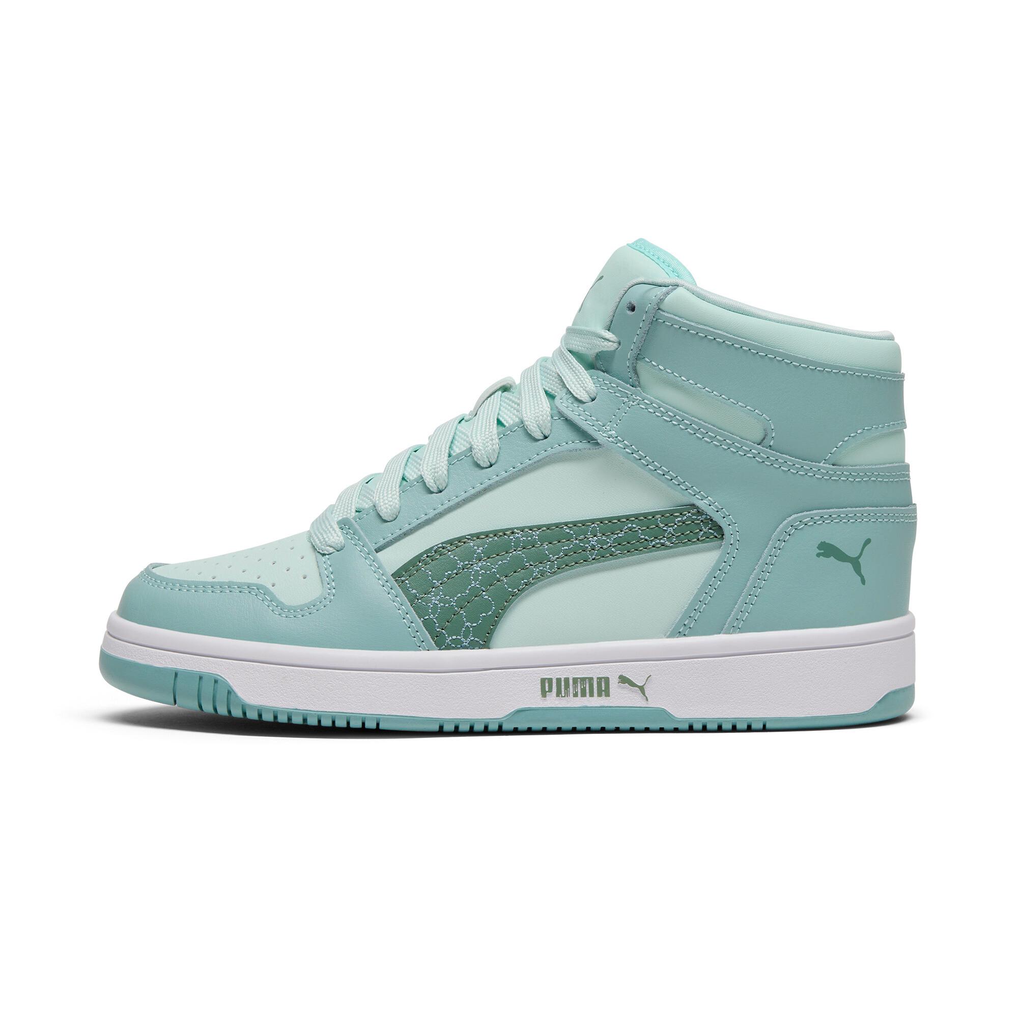 Serve Retro Basketball Vibes With Every Move. A Synthetic Leather Upper And Mid-Cut Padded Collar Provide Support And Style, While The Softfoam+ Sockliner Keeps You Cushioned All Day. Perfect For Court Sessions Or Casual Hangouts, These Sneakers Radiate Puma Energy. Details Width: Regulartoe Type: Roundedfastener: Lacesmain Material Of Upper: Leatherheel Type: Flatlining: Textilepronation: Neutral | | PUMA Rebound Layup Rebel Women's Mid Sneakers in Peaceful Blue/Green Moon/Modern Mint, Size 7.5