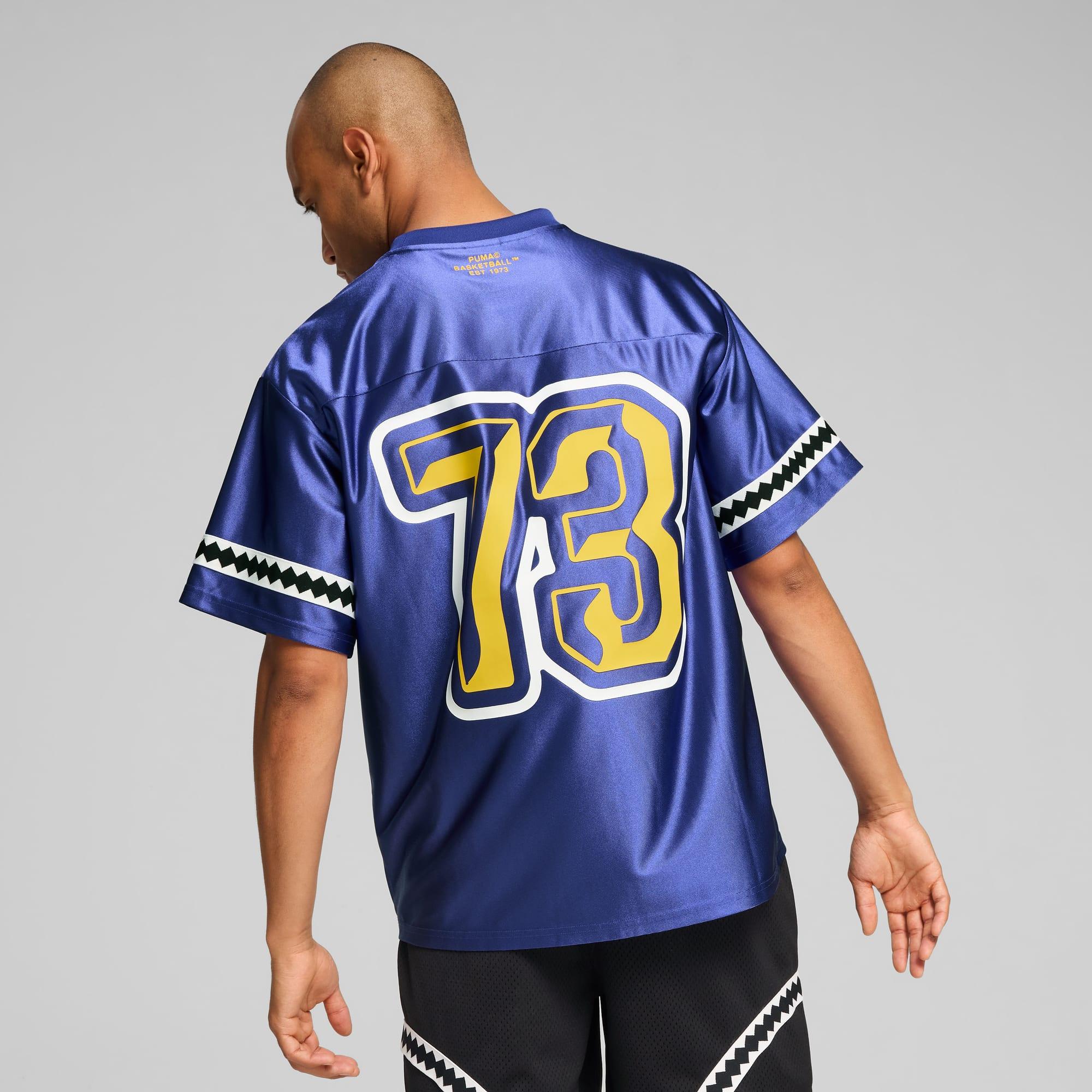 Make an entrance in this relaxed-fit jersey with bold graphics, PUMA Hoops branding and our moisture-wicking dryCELL tech to keep you cool and comfortable when the action heats up.dryCELL: Performance technology designed to wick moisture from the body and keep you free of sweat during exerciseMade with 100% recycled material excluding trims & decorations.Relaxed fit180 gsm, tricot materialCrew neckShort sleevesPUMA branding details
