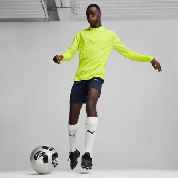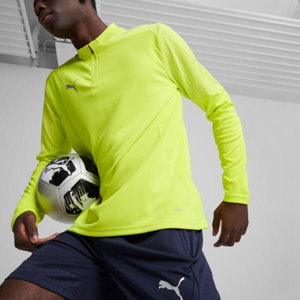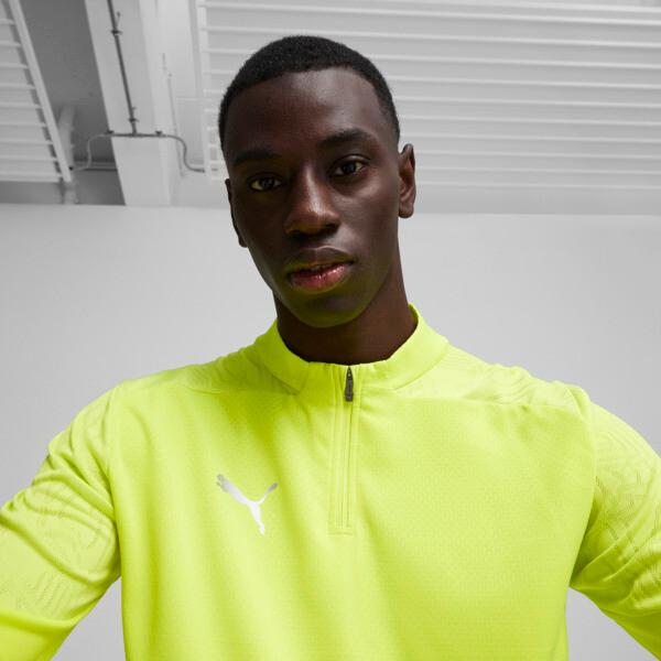 Meet the next generation of PUMA Soccer. This men's quarter-zip training jacket is the gear you see on our top-level teams. The slim-fit jacket has been specially treated so it wicks away moisture, meaning you'll stay dry even after a long session on the training pitch. | PUMA teamFINAL Quarter-Zip Men's Soccer Training Jacket in Electric Lime/Silver, Size L