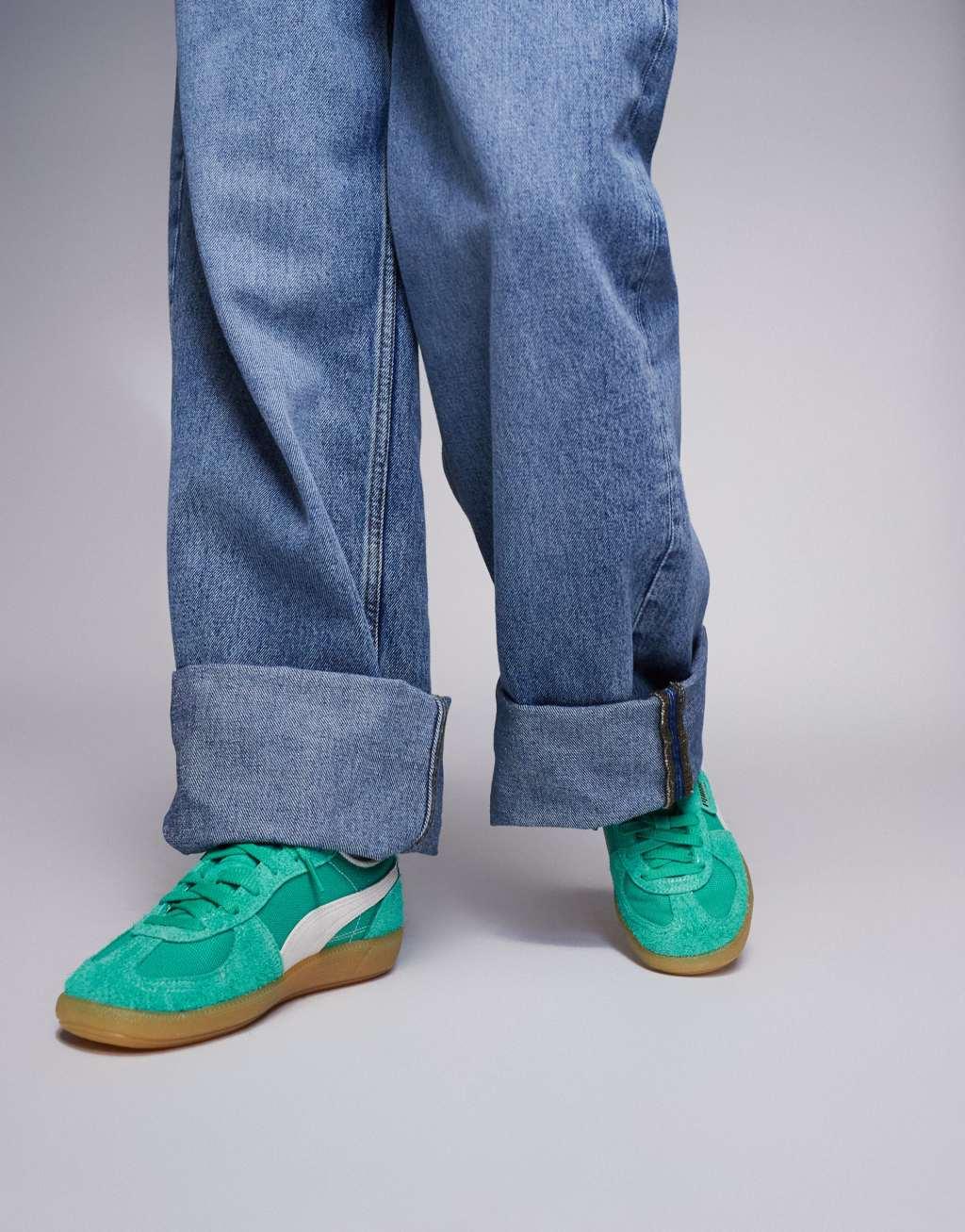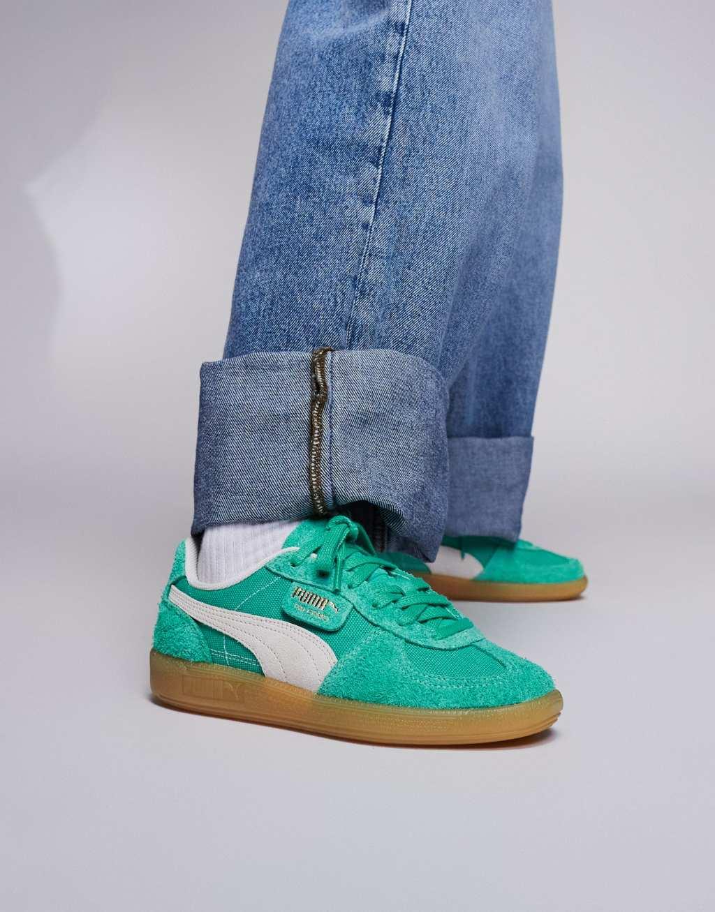 PUMA Vintage Palermo sneakers with gum sole in green and white