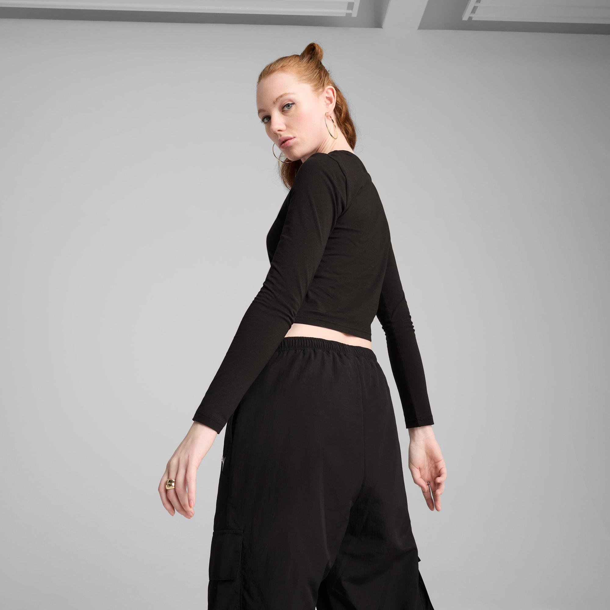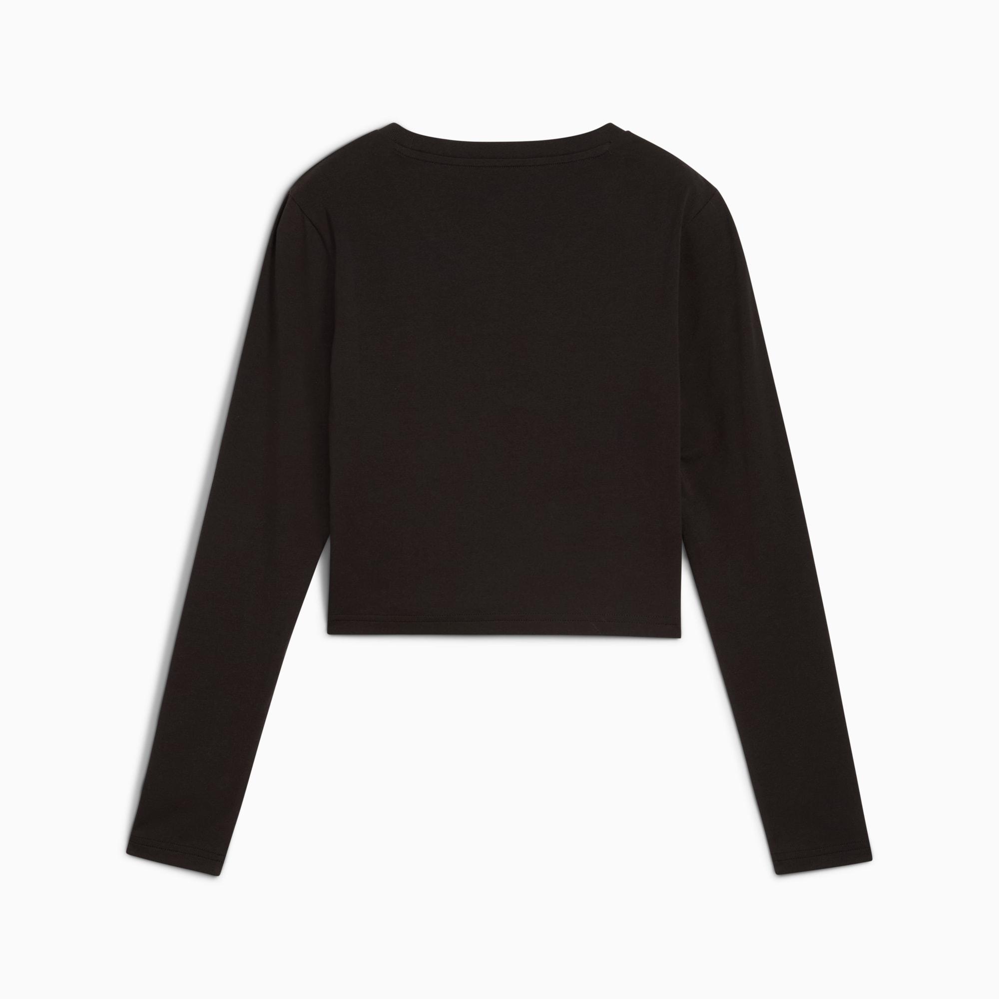 descriptionStep up your casual style with this long-sleeve baby tee. Featuring embroidery on the chest, it's perfect for layering or wearing on its own. Embrace the PUMA vibe and make every moment effortlessly cool and confident.Style: 629761_01Color: PUMA Blackmeasure & sizeModel informationModel is 5' 8" tall and is wearing size S.detailsSlim fitSingle jersey fabricCropped lengthCrew neckLong sleevesPUMA branding detailsmaterials & careMaterial informationShell: 95% cotton, 5% elastaneRib: 80% cotton, 20% polyesterCare instructionsExclusive of DecorationWash with similar coloursWash and iron inside outUse detergent for coloursDo not dry clean