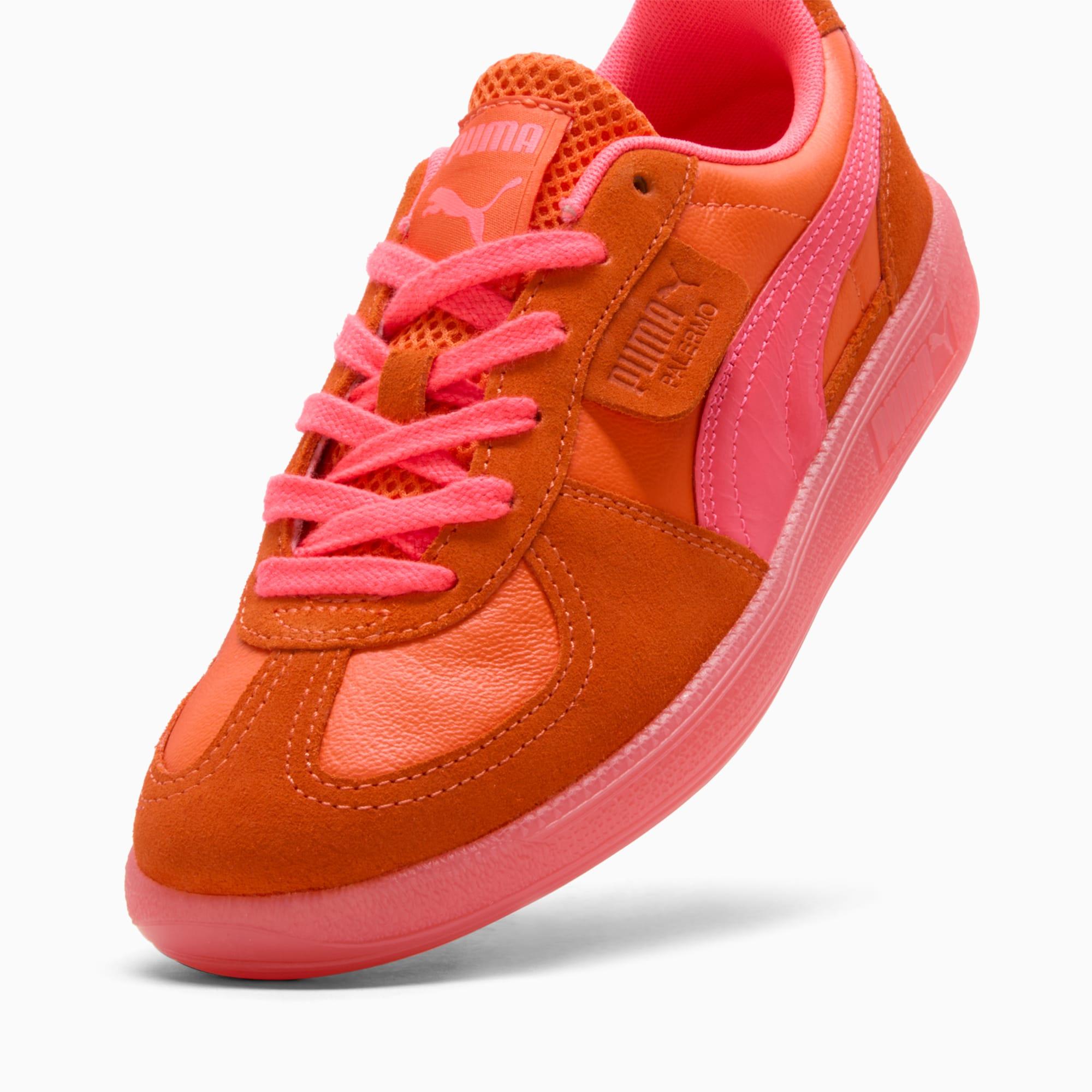 A terrace legend from our archives returns: The Palermo. The silhouette debuted back in the early '80s, where it quickly became a staple among the terrace crowds in British soccer stadiums. Now, weâve brought it back for the fans. Like the original, the Palermo is complete with its signature tag at the upper, a T-toe construction, and, of course, the classic gum sole. This rendition features a citrus-inspired colorway for a burst of stand-out style. | PUMA Palermo Citrus Women's Sneakers in Flame Flicker/Sunset Glow/Salmon, Size 6