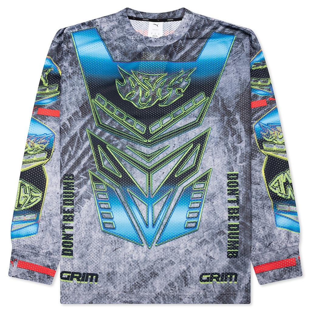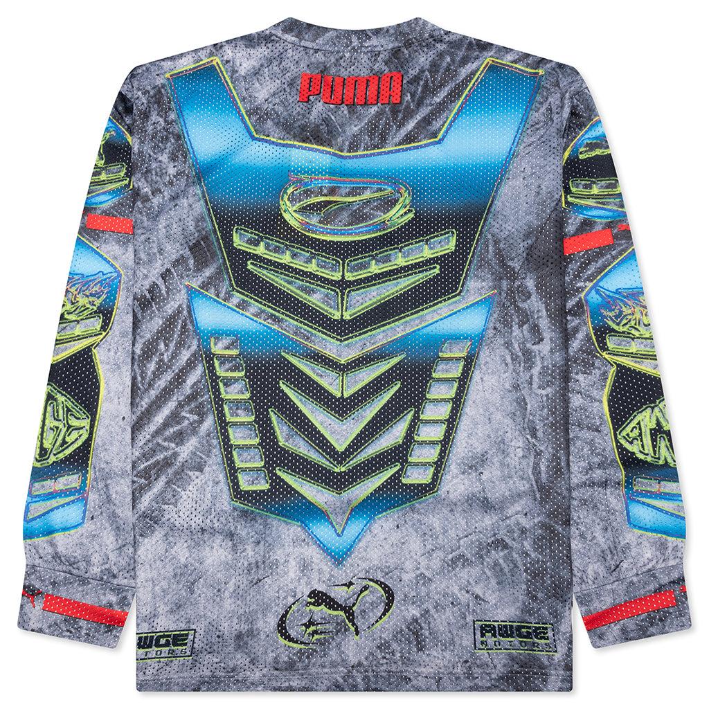 The Puma x A$AP Rocky Moto Armor L/S brings a bold and stand out look. Crafted with mesh and polyester for breathability while having a oversized relaxed fit, delivering both comfort and flexibility. The all-over distressed print graphics includes "DON'T BE DUMB", the name of A$AP Rocky's anticipated upcoming album. Additional PUMA x A$AP Rocky branding completes the design. Made with mesh and polyester Oversized relaxed fit Crew neck PUMA x A$AP Rocky branding All-over distressed print Style No: 633393-02