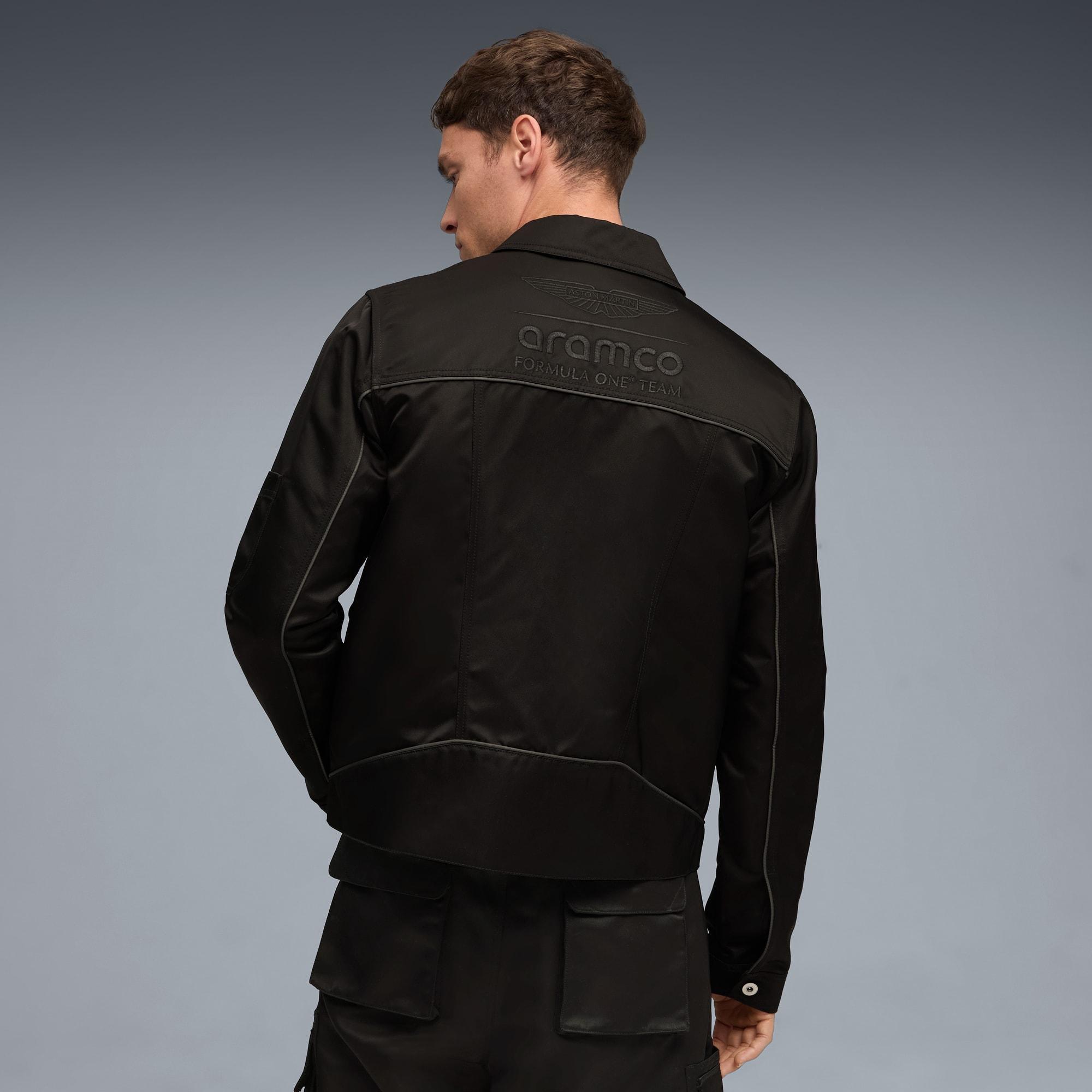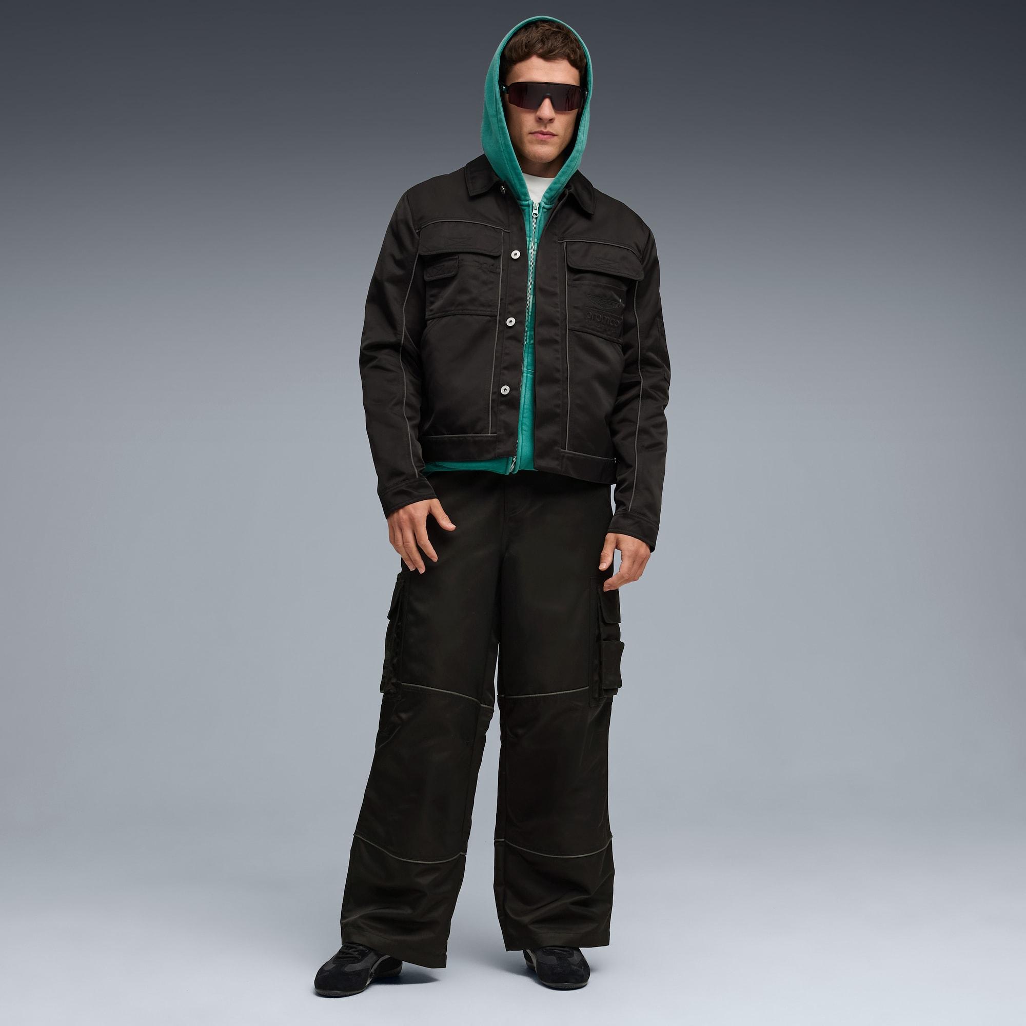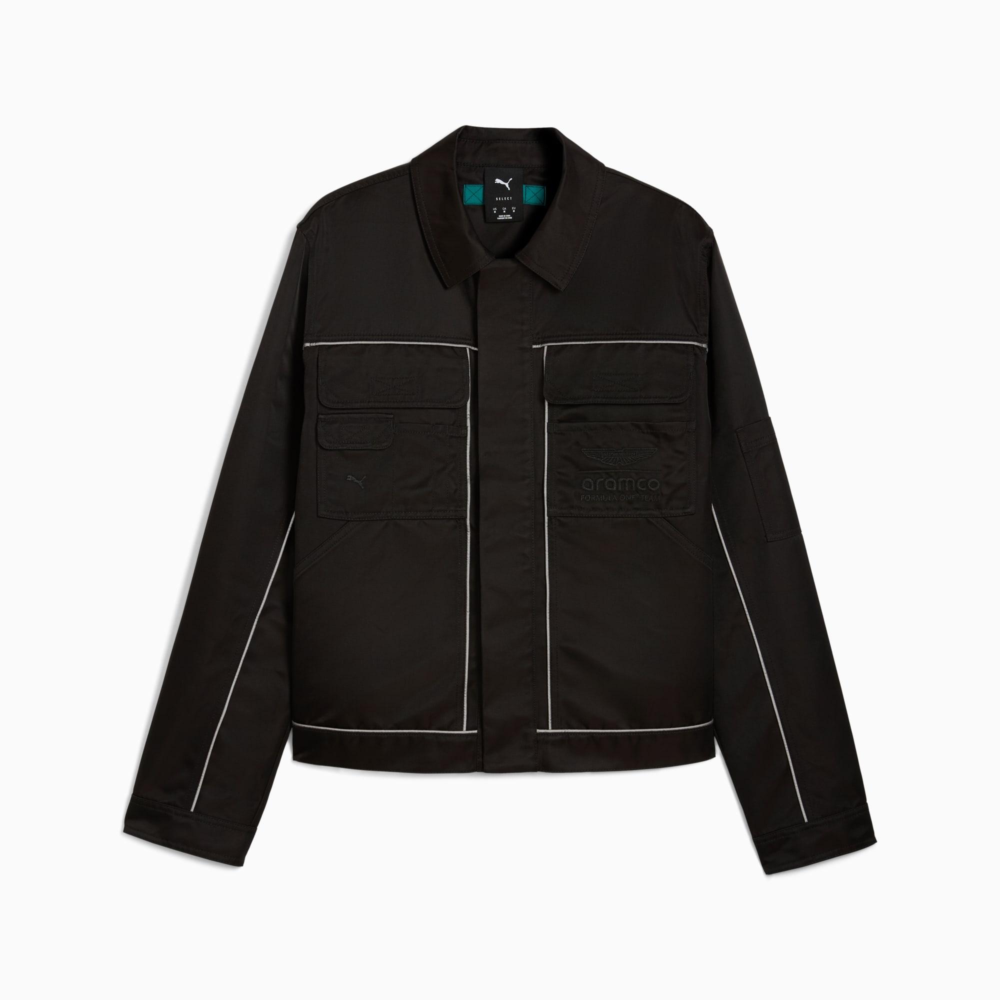 descriptionPUMA x ASTON MARTIN ARAMCO F1® TEAM presents a collection of fanwear dedicated to the team behind the team. While the spotlight often shines on the two drivers, this drop honors the unsung heroes at the Aston Martin Racing Technology Campus. Inspired by workwear and built for everyday wear, it’s headlined by the Speedcat, Full Zip Hoodie, Gear Jacket, and more.Style: 635893_01Color: PUMA Blackmeasure & sizeModel informationModel is 6' 1" tall and is wearing size M.detailsRegular fitCollar neckLong sleevesFastener: Hidden button placketLength: Standard jacketPockets: Hook-and-loop pockets on the chest, small pencil pocket on the chest, side pockets, sleeve pocketPUMA x Aston Martin Aramco F1® Team branding detailsmaterials & careMaterial informationShell: 100% nylonPocket Bag: 100% nylonCare instructionsClose all fasteningsWash garment in a washing bagWash and iron inside outExclusive of DecorationGentle wash - separatelyUse detergent for colours