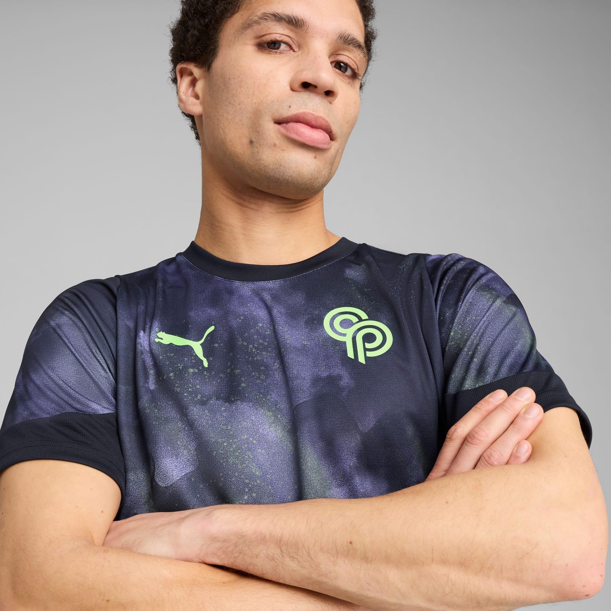 This jersey brings bold style and performance together in this exclusive PUMA x CP collection. Inspired by Christian Pulisic's journey and the Ultra cleats he wears, this jersey features striking graphics and a fresh color palette. It balances casual wear and athletic performance, making it an essential piece for fans chasing their own dreams.dryCELL: Performance technology designed to wick moisture from the body and keep you free of sweat during exerciseAs part of the RE:FIBRE program, this garment is made of at least 95% recycled material from textile waste and other used materialsSlim fitMain material: Double face jacquardRegular lengthCrew neckShort sleevesAll-over print on whole jerseyPUMA Cat logo placed on right chestCP logo on left chest