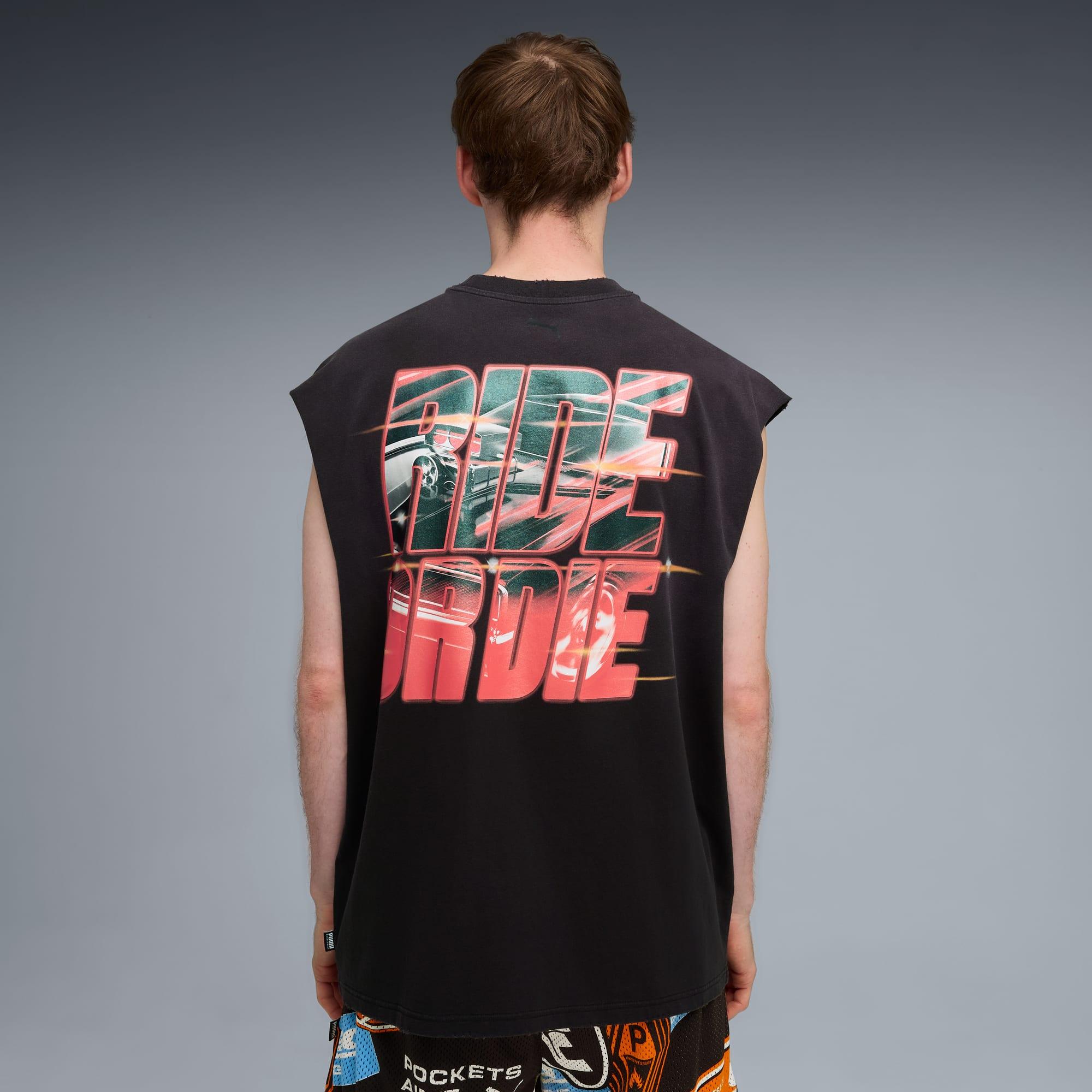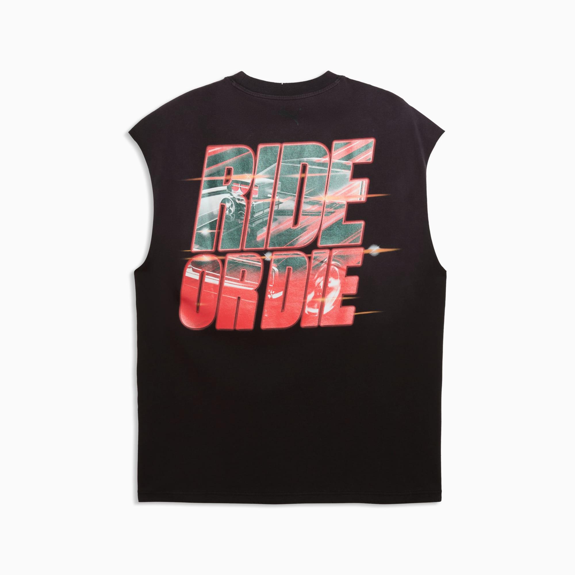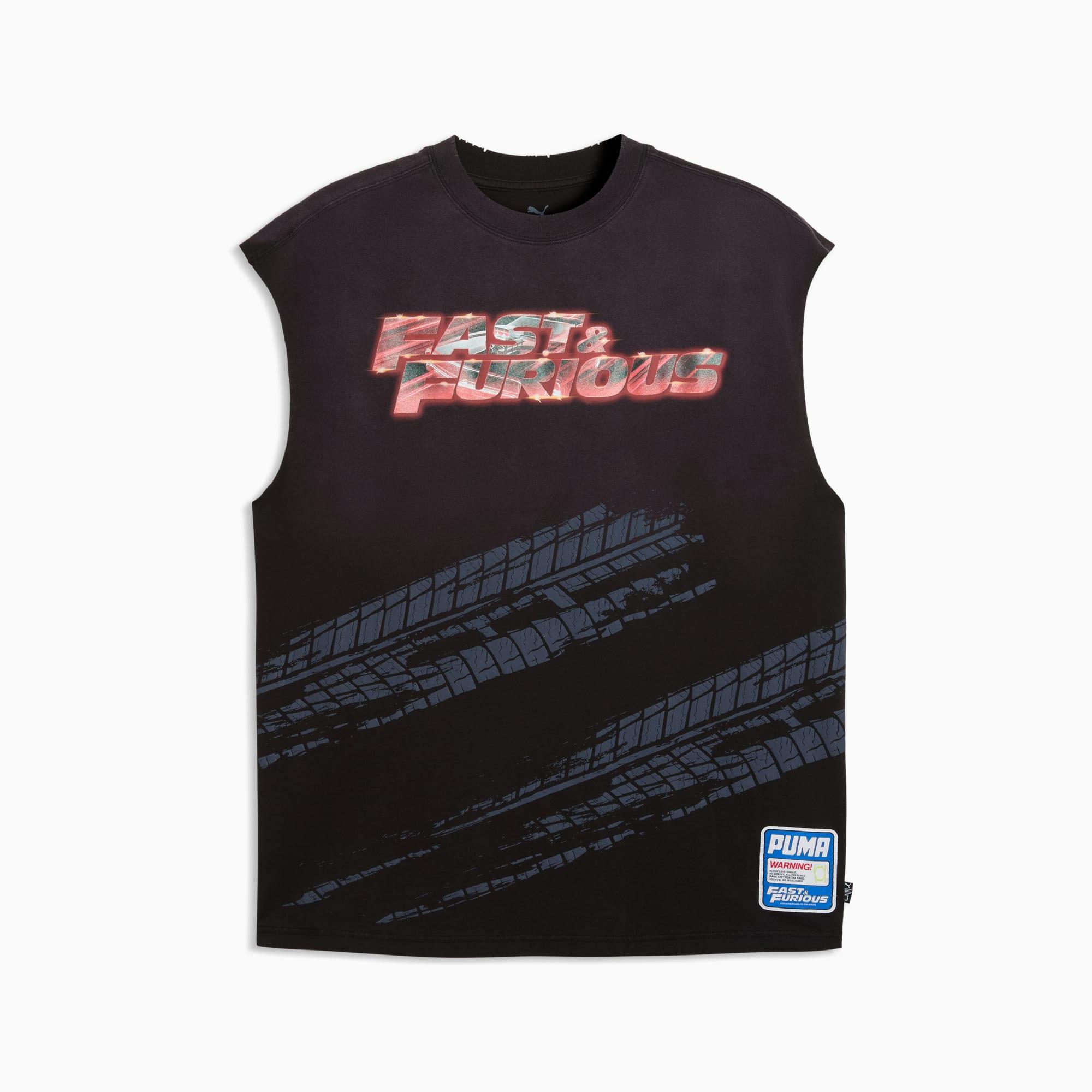 descriptionPUMA teams up with Fast & Furious for a collection that's all gas, no brakes. Blending the bold energy of the franchise with Melo's unmistakable game and personal style, this collection is flashy, fun, and firing on all cylinders. Wear this cutoff tee for pick-up games at the park or casual weekend plans.Style: 637901_01Color: PUMA Blackmeasure & sizeModel informationModel is 6' 1" tall and is wearing size M.features & benefitsMade with at least 20% recycled cotton.detailsFit: RelaxedNeck: Crew neckSleevelessLength: RegularPUMA x FAST & FURIOUS branding detailsmaterials & careMaterial informationShell: 100% cottonRib: 70% cotton, 30% polyesterCare instructionsUse detergent for coloursWash garment in a washing bagDo not dry cleanWash and iron inside outWash with similar coloursDo not iron printExclusive of DecorationUse only mild detergent