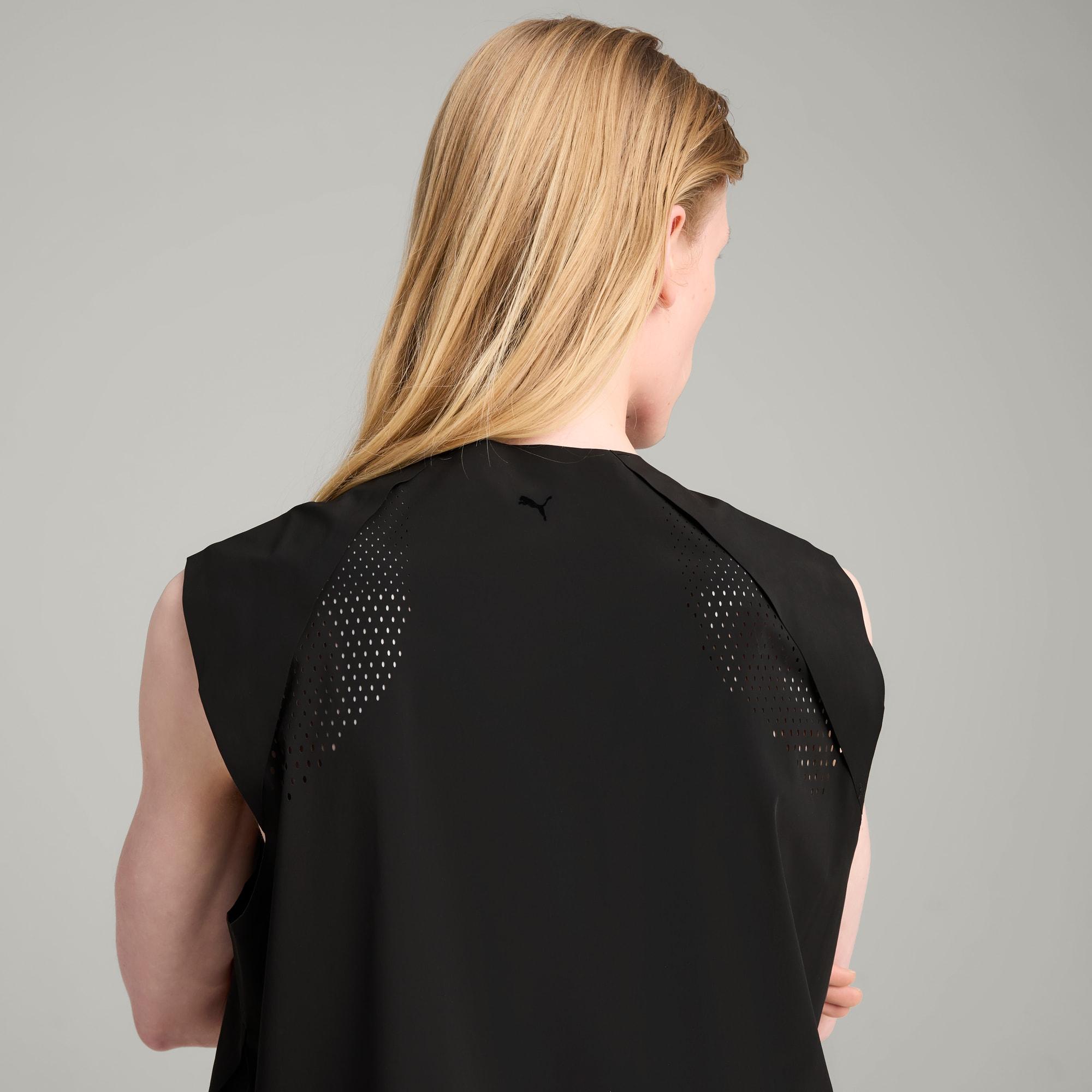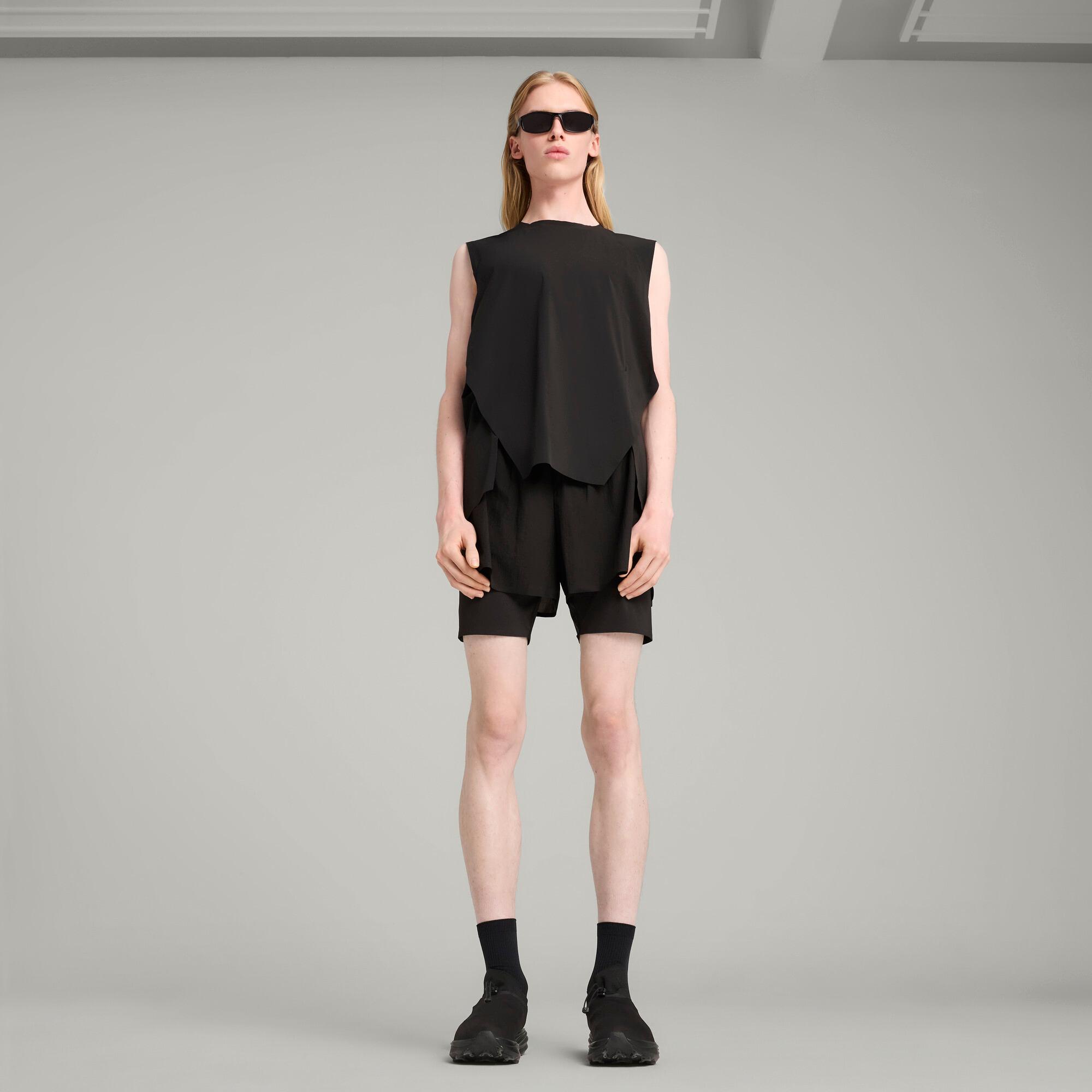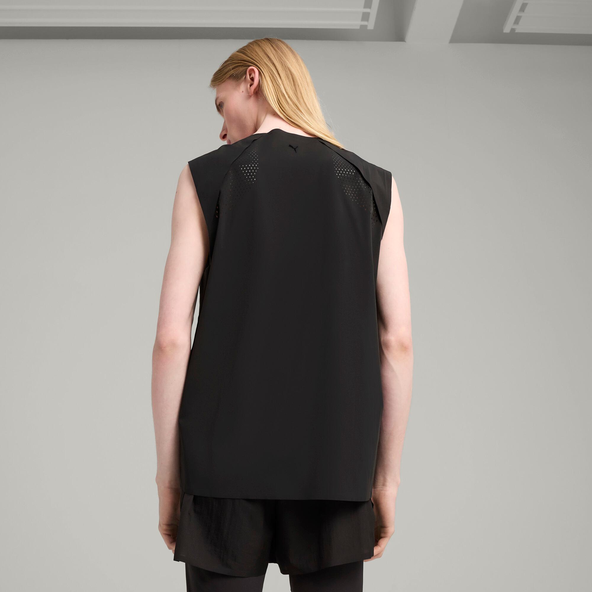 This season's edition of PUMA x HELIOT EMIL is a progressive collab fusing trail running and fashion. Hybridizing PUMA's performance heritage with Heliot Emil's industrial monochromatic vision, materials are both lightweight and functional. Part of the collection, this vest top features laser-cut bonded seams for less friction and more comfort. The perfect statement layering piece for your wardrobe.