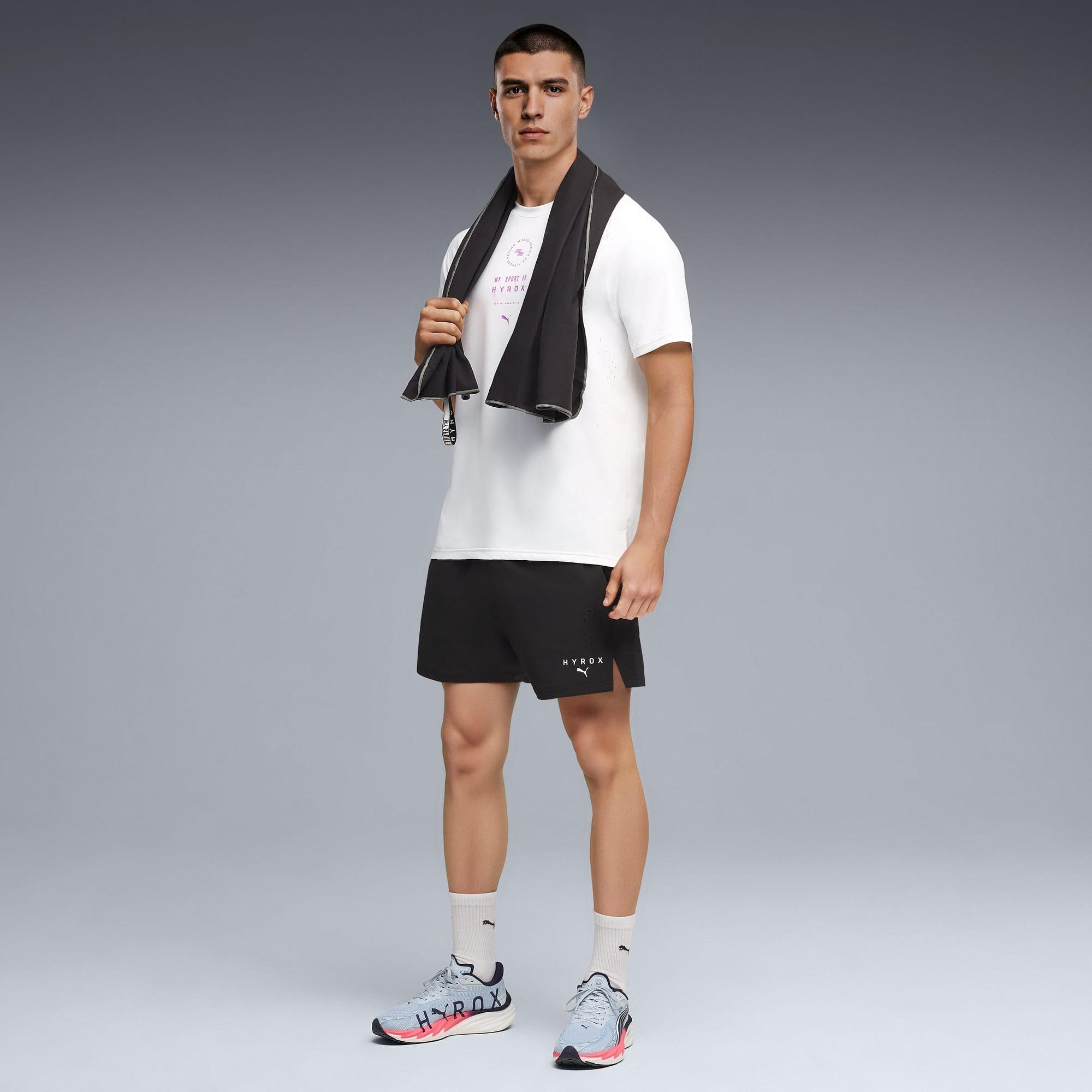 descriptionThe ultimate fitness race demands gear that can keep up. The PUMA x HYROX DRYELITE training tee delivers lightweight mesh, dryCELL tech, and ergonomic cut lines for breathability and freedom of movement. For a light workout or going all-out, this tee will support you every step of the way.Style: 528567_02Color: PUMA Whitemeasure & sizeModel informationModel is 5' 12" tall and is wearing size M.features & benefitsMade with at least 90% recycled materials.detailsFit: RegularMain material type: Single jerseyNeck: Crew neckShort sleevesLength: RegularMesh panels for ventilationmaterials & careMaterial informationShell: 92% polyester, 8% elastaneCare instructionsWash with similar coloursExclusive of DecorationDo not use fabric softenerUse only mild detergentWash garment inside outWash garment in a washing bag