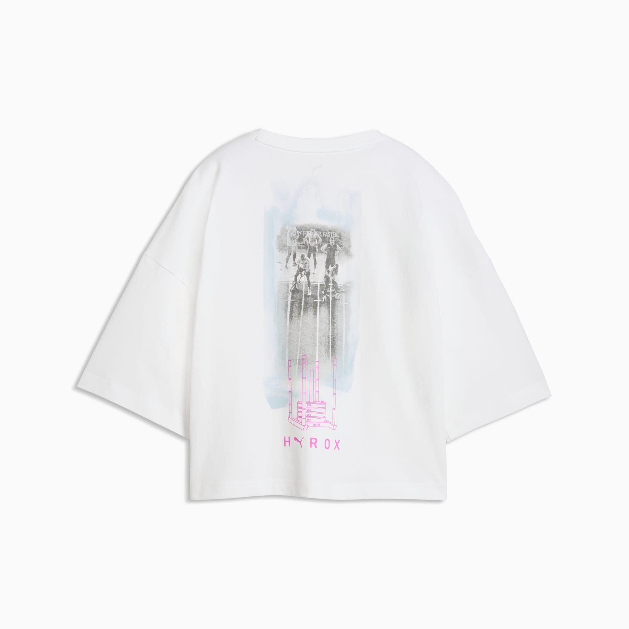 descriptionBring HYROX attitude to your everyday. This PUMA x HYROX tee delivers effortless comfort and race-inspired style, whether you’re cooling down, gearing up, or just hanging out.Style: 528509_02Color: PUMA Whitemeasure & sizeModel informationModel is 5' 8" tall and is wearing size S.features & benefitsMade with at least 20% recycled cotton.detailsFit: OversizedMain material type: Single jerseyNeck: Crew neckShort sleevesLength: ShortPUMA branding detailsmaterials & careMaterial informationShell: 100% cottonCollar: 70% cotton, 30% polyesterCare instructionsDo not use fabric softenerUse only mild detergentWash with similar coloursDo not iron printTumble dry inside outExclusive of DecorationWash and iron inside out