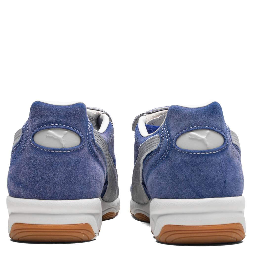 Close PUMA collaborator Colm Dillane, better known as KidSuper, returns with his latest collection, fusing streetwear style codes with PUMA’s archive of football classics. This iteration of the King Indoor model is dressed in blue suede with a weathered, faded finish on the upper, creating a pre-loved look. The Puma Formstrip takes pride on each sidewall, completed by a fold-over tongue with a peel-away logo detail. Suede upper Leather Formstrip Distressed details Fold-over tongue Lace closure Co-branded elements All sizes are listed in US Men's sizing unless stated otherwise Style No: 401180-01